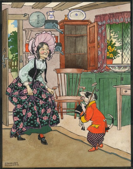 FOLKARD, Charles (1878 - 1963) Original Ink and Watercolour Illustration The Dame said, "Your servant." The Dog said "Bow Wow."