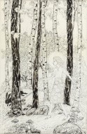 Original Pen Ink and Wash Drawing : Walking in the Woods