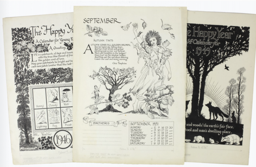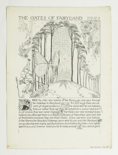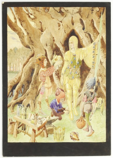 The surviving archive of golden age illustrator Horace J. Knowles. Comprising over 1,200 original water colours and line illustrations for his published work, preparatory drawings, and sketch-books, as well as his own copies of his illustrated books. Including complete original manuscripts for his fully illustrated books, including Peeps into Fairyland, The Legend of Glastonbury, Countryside Treasures and My First Book Of Prayers.Included are signed books, variants, calendars, designs for theatre and cards and more.