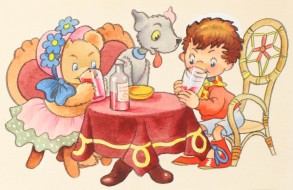 Noddy and Tessie-Bear Enjoying Lemonade and Buns