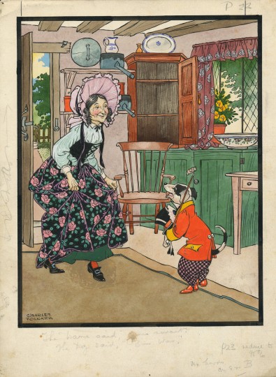 FOLKARD, Charles (1878 - 1963) Original Ink and Watercolour Illustration The Dame said, "Your servant." The Dog said "Bow Wow."