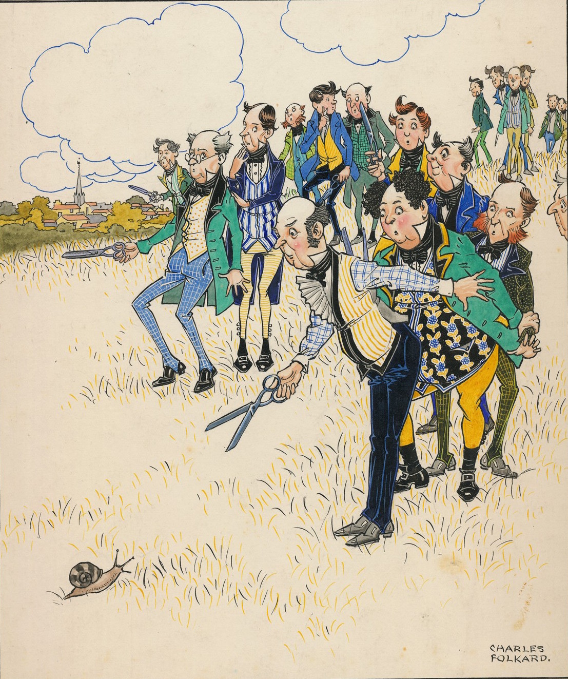 FOLKARD, Charles (1878 - 1963) Original Ink and Watercolour Illustration Four-and-twenty tailors went to kill a snail