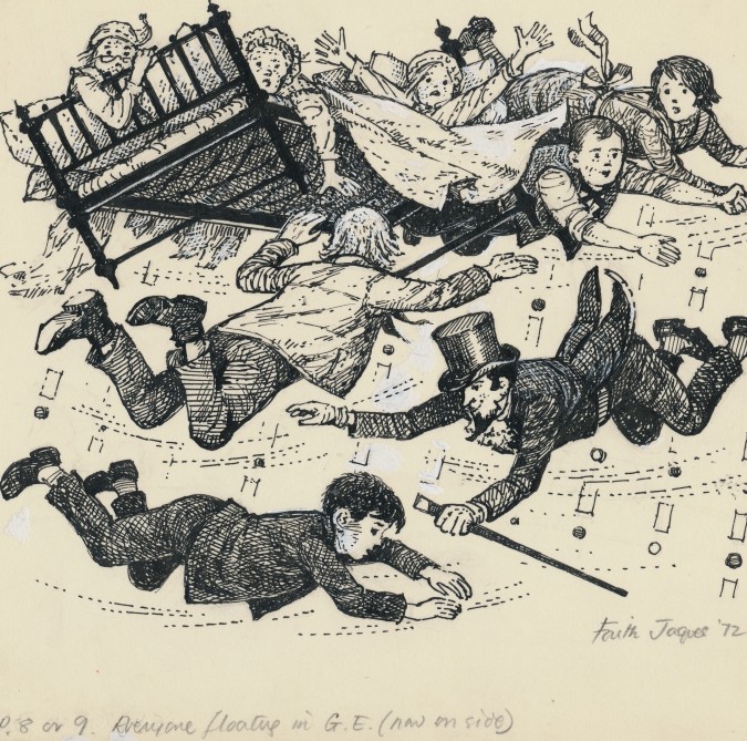 The complete archive of the original artwork by Faith Jacques used to illustrate the first UK edition of Roald Dahl’s Charlie And The Great Glass Elevator.