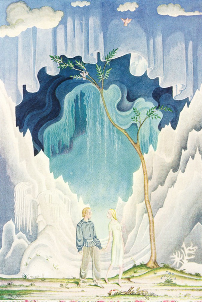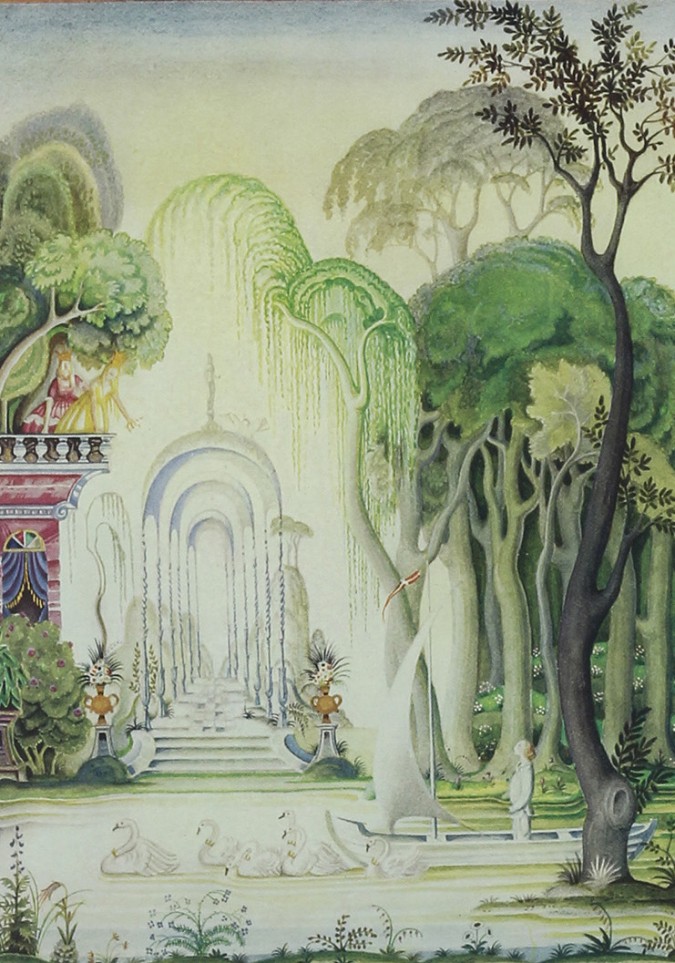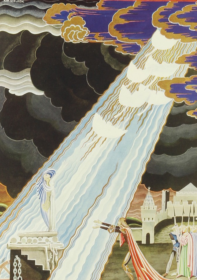 Nielsen soon abandoned book illustration and moved to America. There he worked on various theatrical and film projects, providing drawings for Disney’s Fantasia, and taking commissions for murals.