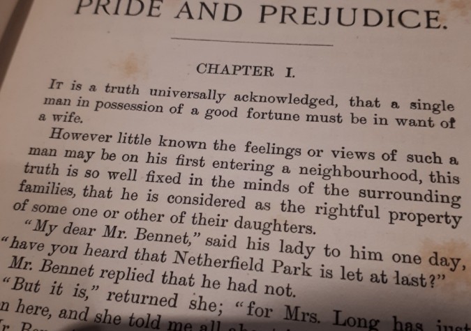 “It is a truth universally acknowledged, that a single man in possession of a good fortune, must be in want of a wife.” – Pride and Prejudice