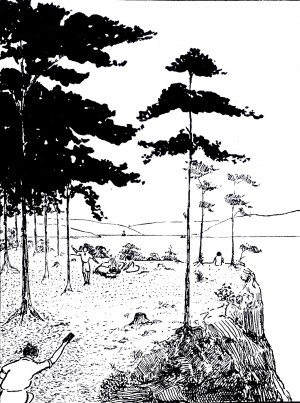 It all began in 1928 when Ransome and his wife Evgenia met up with their friends, the Altounyan family, who were staying with their Collingwood grandparents at Coniston in the Lake District. The two families bought a couple of dinghies, named Swallow and Mavis (later renamed Amazon), and Ransome elected to teach the five children to sail. After the Altounyan’s departure at the end of the summer holidays, Ransome decided to write an adventure story loosely based on the exploits of the children and their time on the lake. In the spring of 1929 therefore he presented a synopsis and 50 pages of Swallows and Amazons to his publishers, Jonathan Cape, who were enthusiastic about him continuing. Upon receiving the completed typescript in April 1930, Cape turned to Steven Spurrier to illustrate the book and he produced at least 23 drawings in addition to a title-page vignette and two maps, but Ransome disliked the drawings so much that only the dustwrapper, endpaper and frontispiece designs were retained for publication.