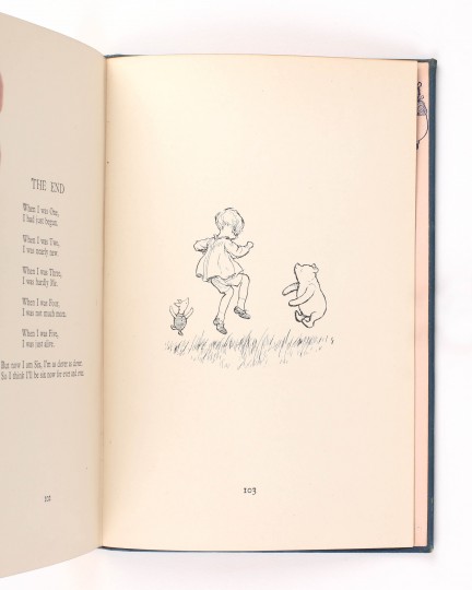 Signed first editions of Milne's famous children's books are uncommon, particularly in this deluxe binding.