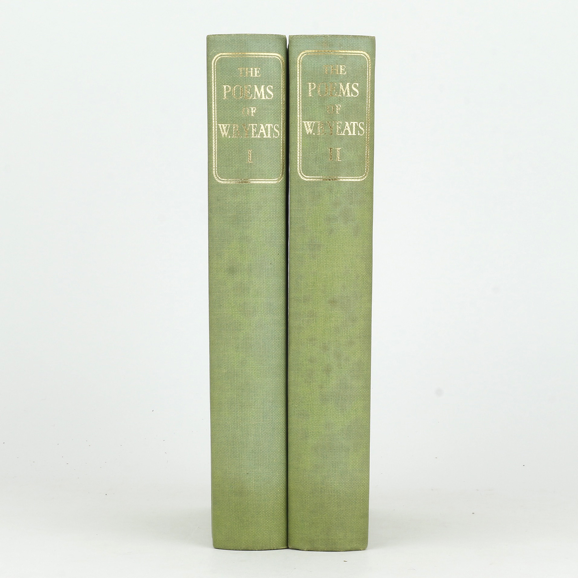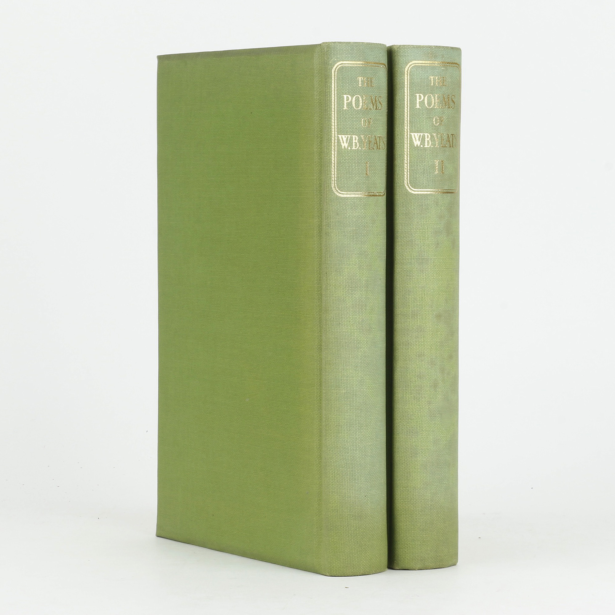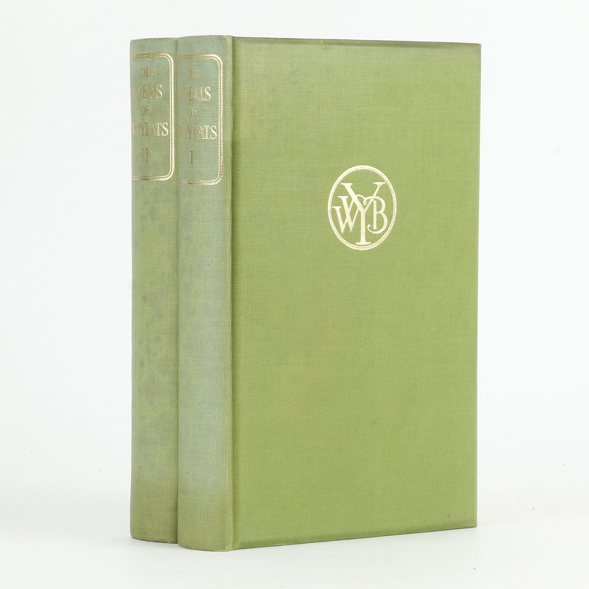 First "definitive" edition of Yeats's collected poems. 8vo. Two volumes. Number 142 of 375 sets printed on Glastonbury Ivory Toned Antique Laid paper and signed by the author. Publisher's green buckram, lettered and decorated gilt. Top edge gilt. Frontispiece portrait to each volume, the first by John S. Sargent and the second by Augustus John. A near fine set, spines slightly faded and spotted. The glassine jackets are creased and chipped, but have preserved the books very well indeed.