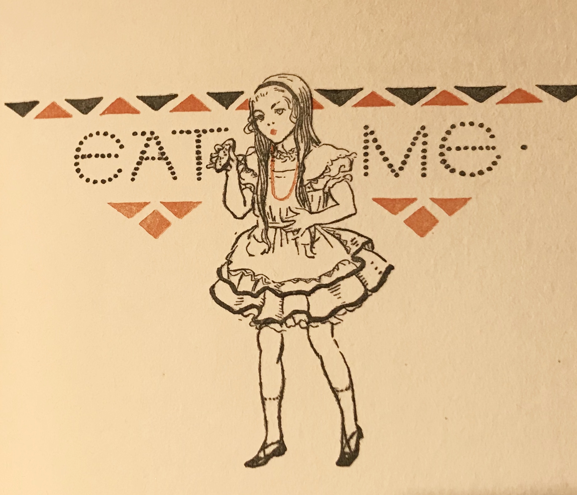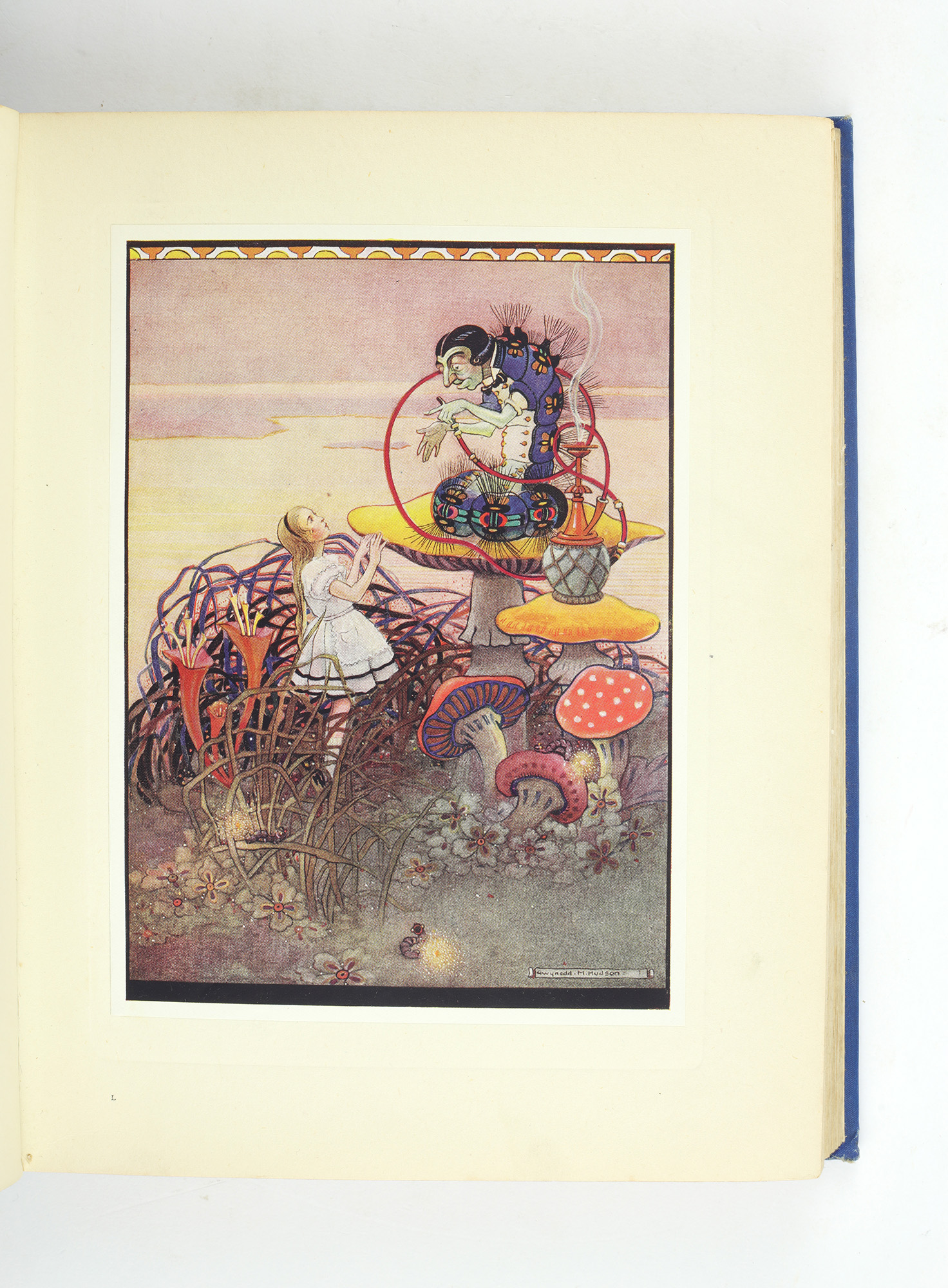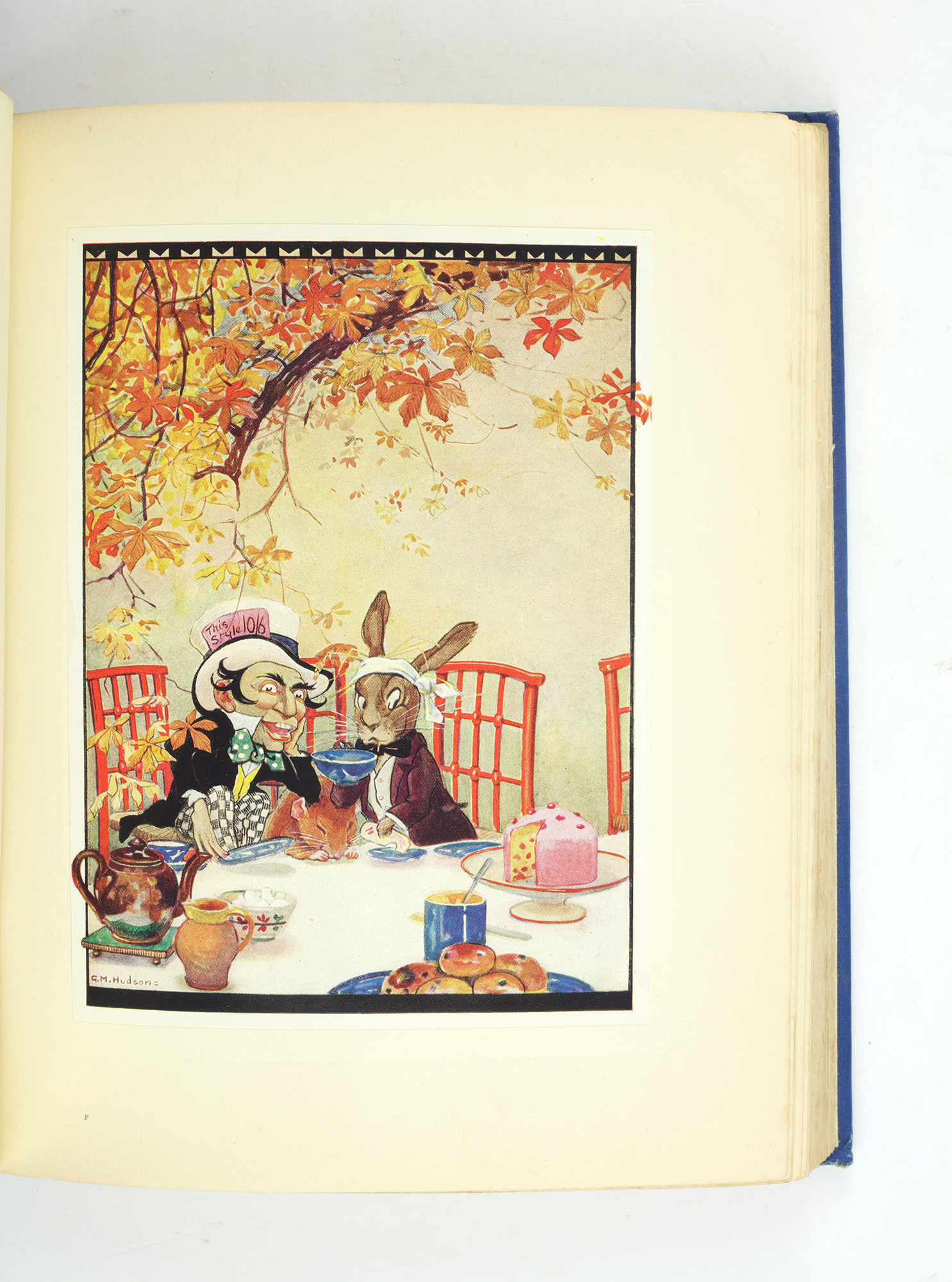 A strikingly beautiful gift edition of Alice, with Hudson's page headers in black and orange providing a decidedly Art Deco feel to the text. The colour plates are vibrant and slightly whacky.