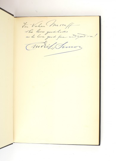 First edition. 8vo. Original black cloth lettered silver, in the buff printed dustwrapper. Inscribed on the front endpaper by Simon, "For Vahan Masraff, who loves good books as he loves good fare and good wine! Andre L. Simon". A near fine copy in a very good dustwrapper, tanned of spine with some wear to the edges and a shallow chip to the upper panel.