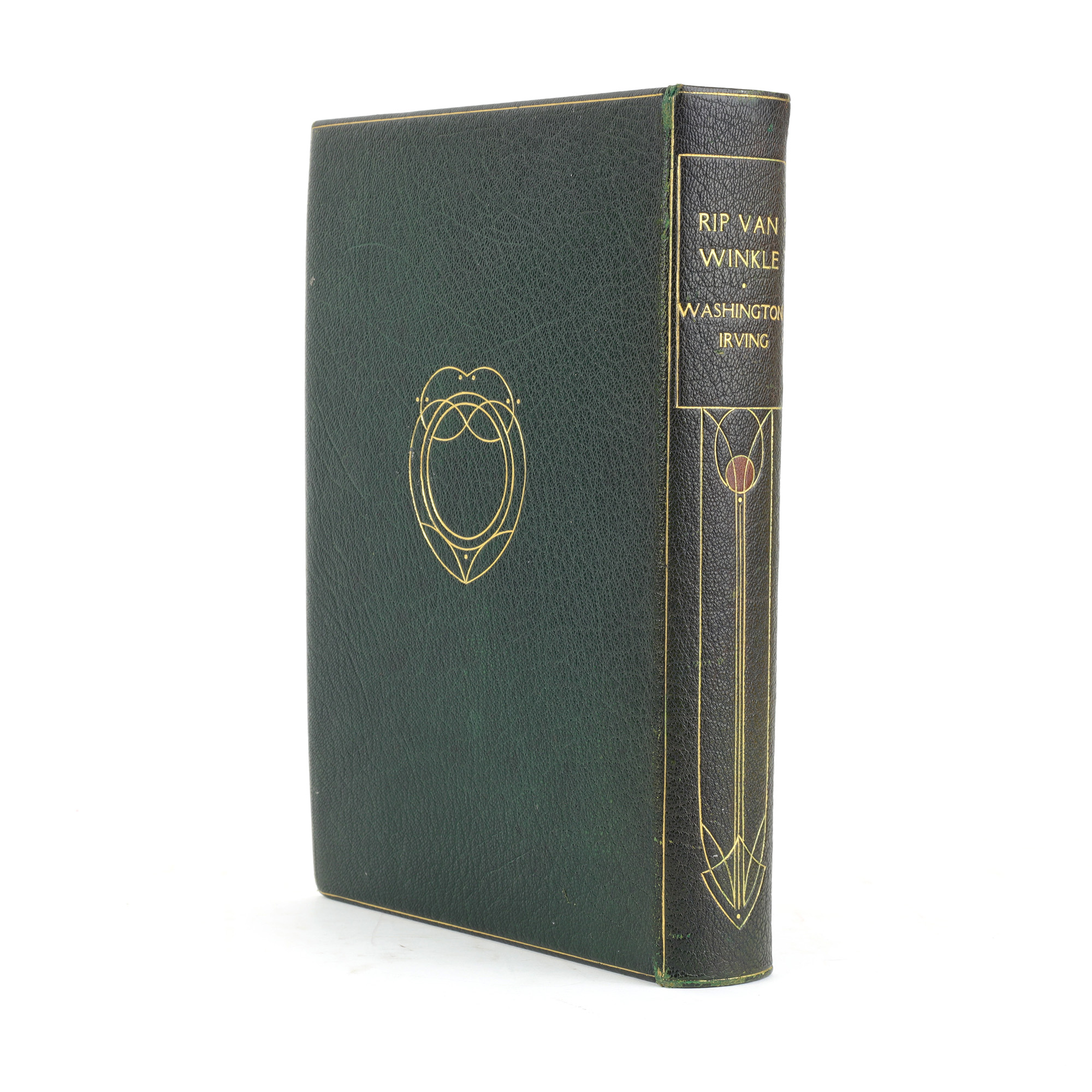 First edition. 4to. Finely bound by Cedric Chivers, c.1905, stamp signed to rear turn in. Full green morocco, with five inlaid vellucent panels, containing miniature watercolours reproducing Rackham's imagery painted on vellum. The upper cover is further decorated with an Art Nouveau design in gilt and two circular green morocco onlays, accentuated by gilt punched dots. The smooth spine is decorated with Art Nouveau gilt decoration and circular amber morocco onlay. Single line gilt border on covers and a heart-shaped gilt design to the rear. Gilt ruled turn-ins and patterned endpapers. All edges gilt. Fifty-one colour plates by Rackham are mounted onto green art paper and protected by tissue guards: apart from the frontis they are all mounted together at the end of the text. One of the double page plates has a slight corner crease to the white border. A very good copy indeed of this extraordinary production, morocco binding with very slight rubs to the joints, slight fading to some panels and occasional foxing to the preliminary and terminal pages.