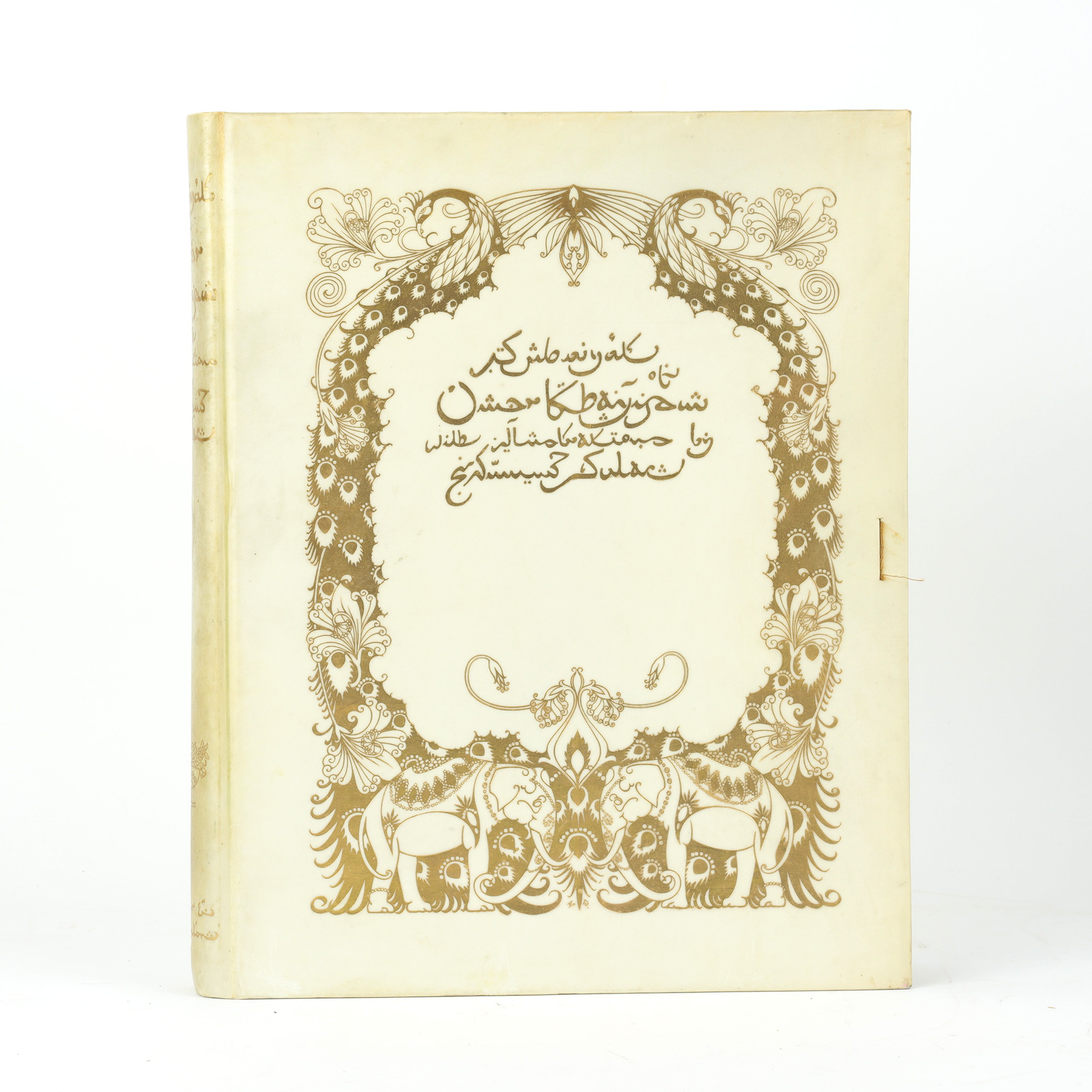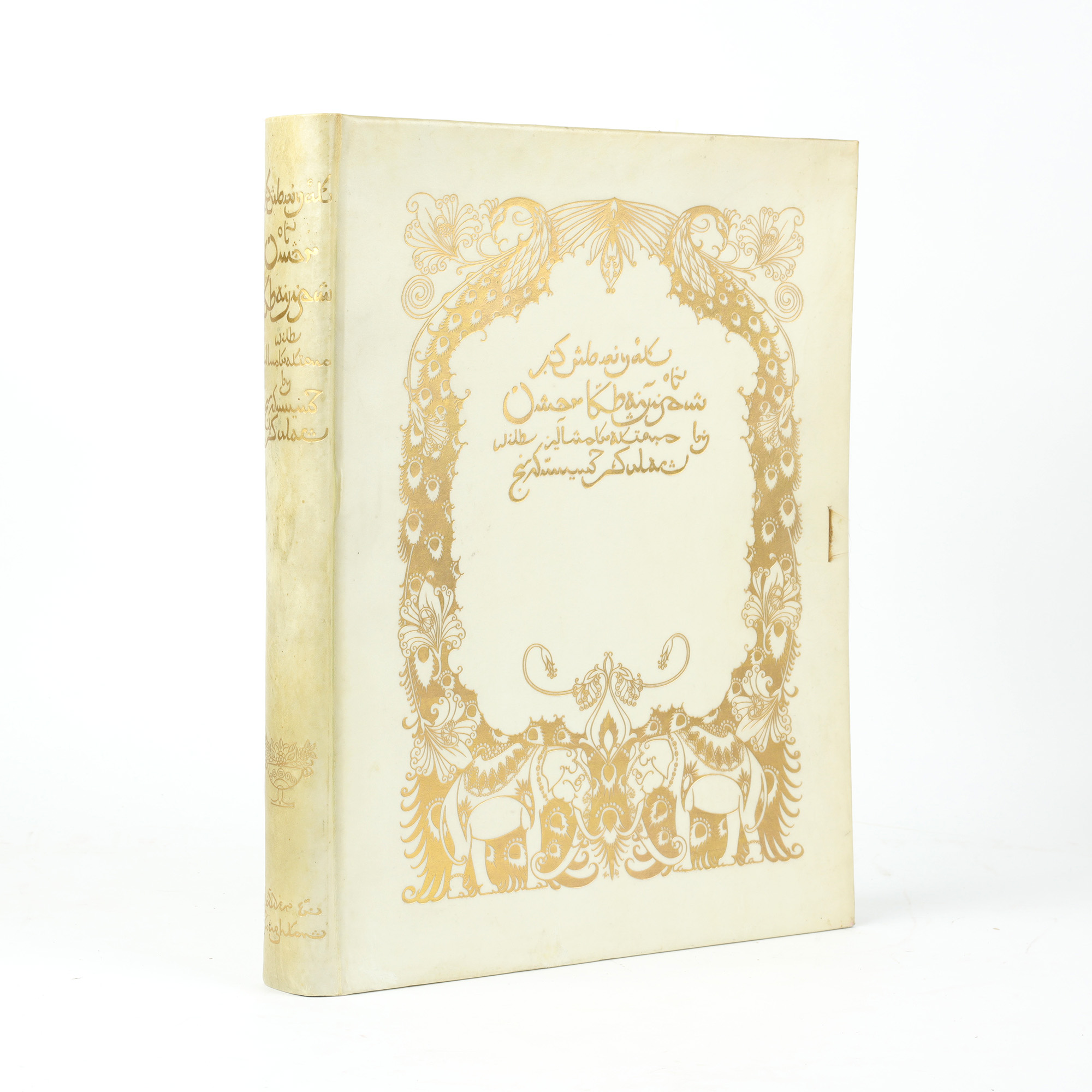 First edition, Deluxe issue, no 105 of 750 copies signed by the artist. Large 4to. Full white vellum with gilt decorations and lettering. Top edge gilt and others untrimmed. Patterned endpapers, decorative page borders and 20 mounted colour plates under captioned tissue guards. A beautiful edition of this epic Perisan poem. In very good condition, spine somewhat darkened.
