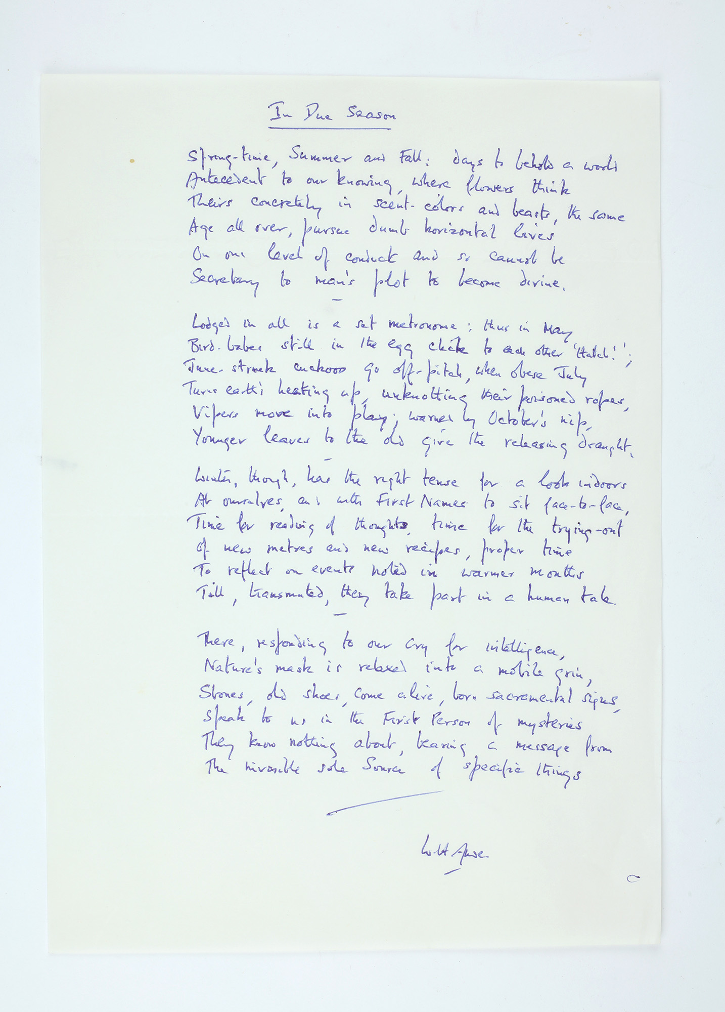 At the time of these manuscripts' creation, Prologue At Sixty had been published the summer before in the New York Review Of Books, but had yet to be published in Britain, and In Due Season had not been published on either side of the Atlantic.
