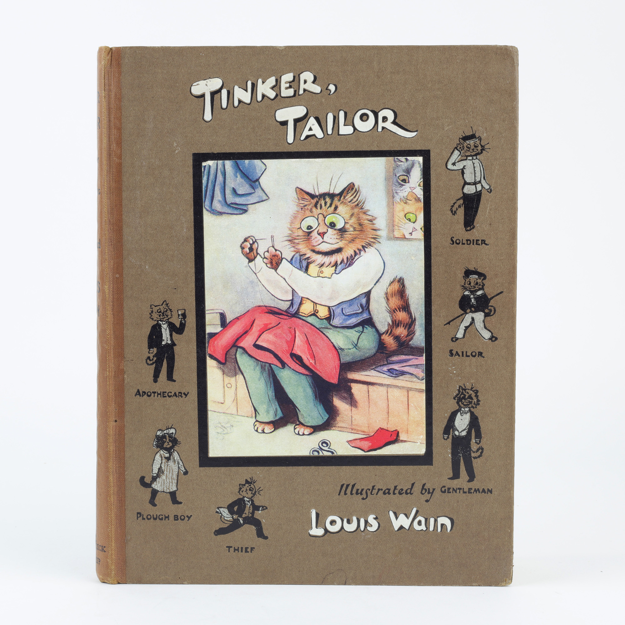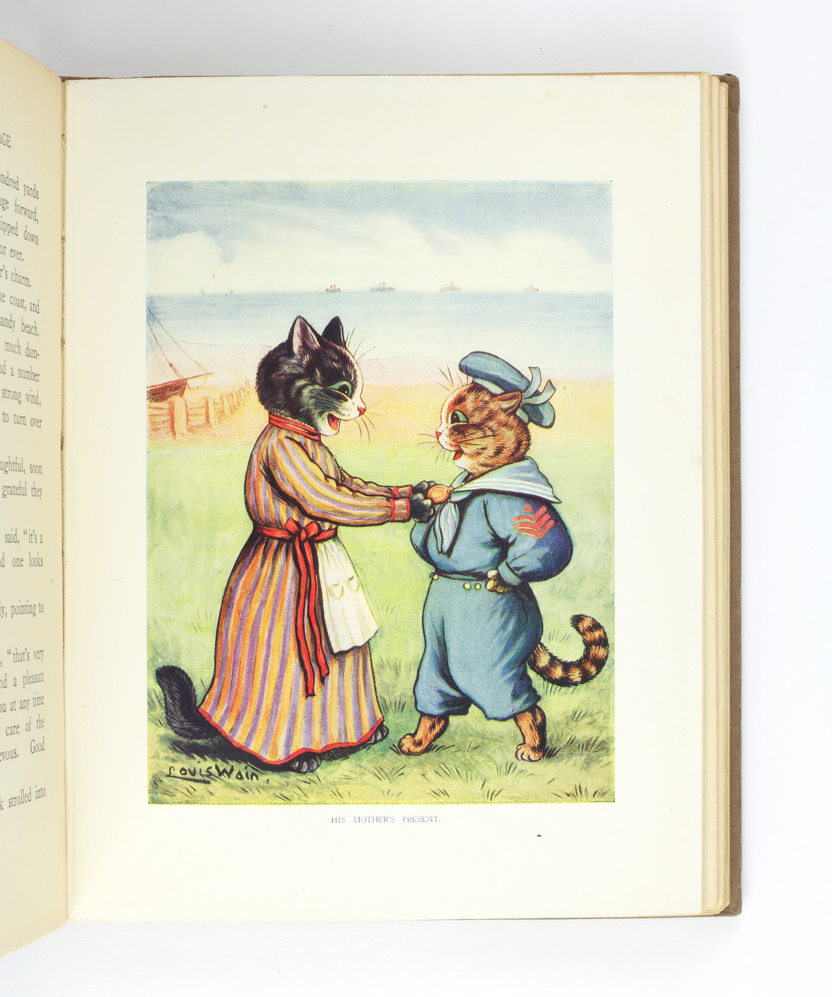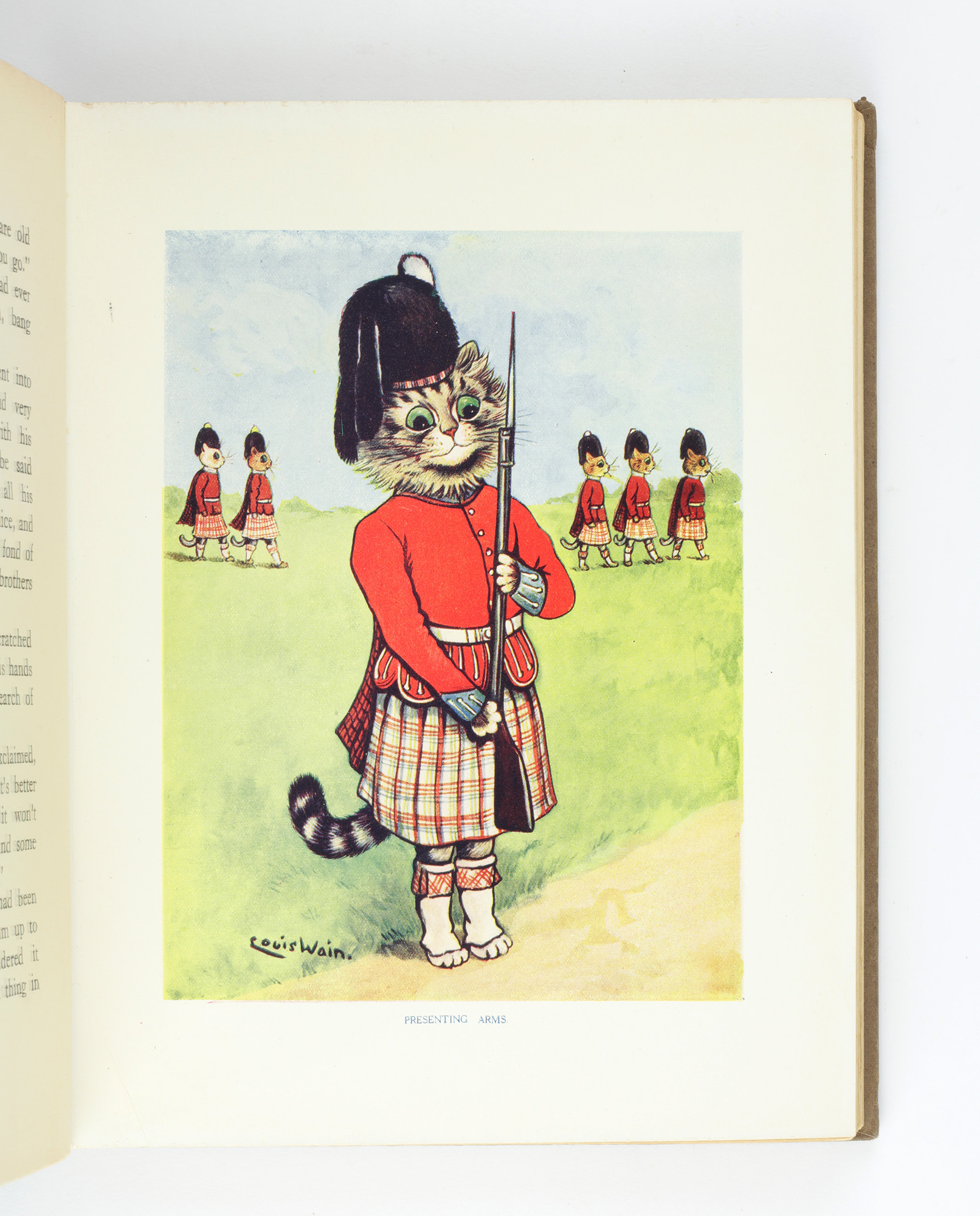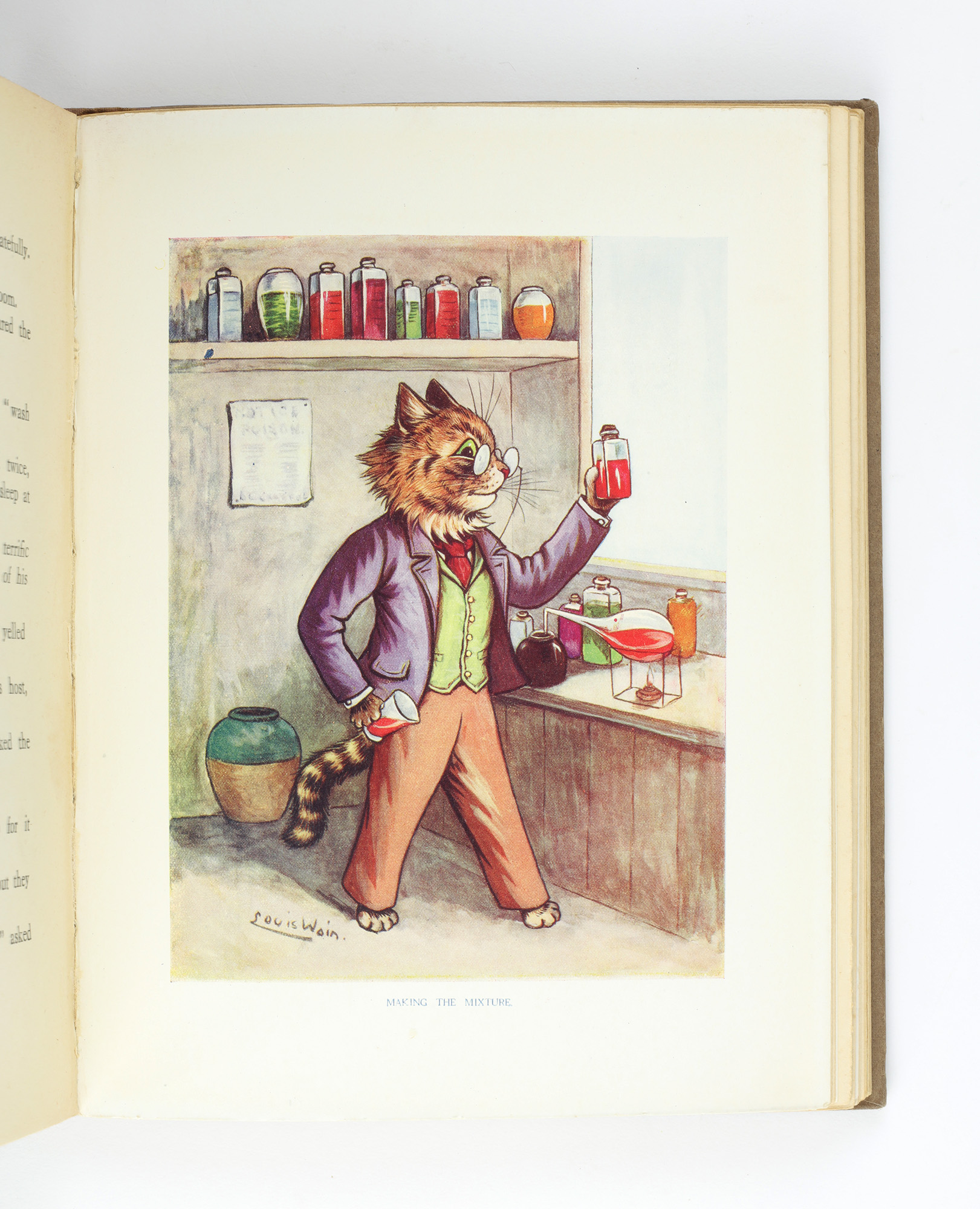First edition. 4to. Cloth spine lettered in black over paper covered boards with colour onlay to upper cover and six black and white cat drawings acting as the border. Twelve colour plates with printed captions and page after page of comical line drawings. A near fine copy, bright and fresh, with a little waviness to the spine.