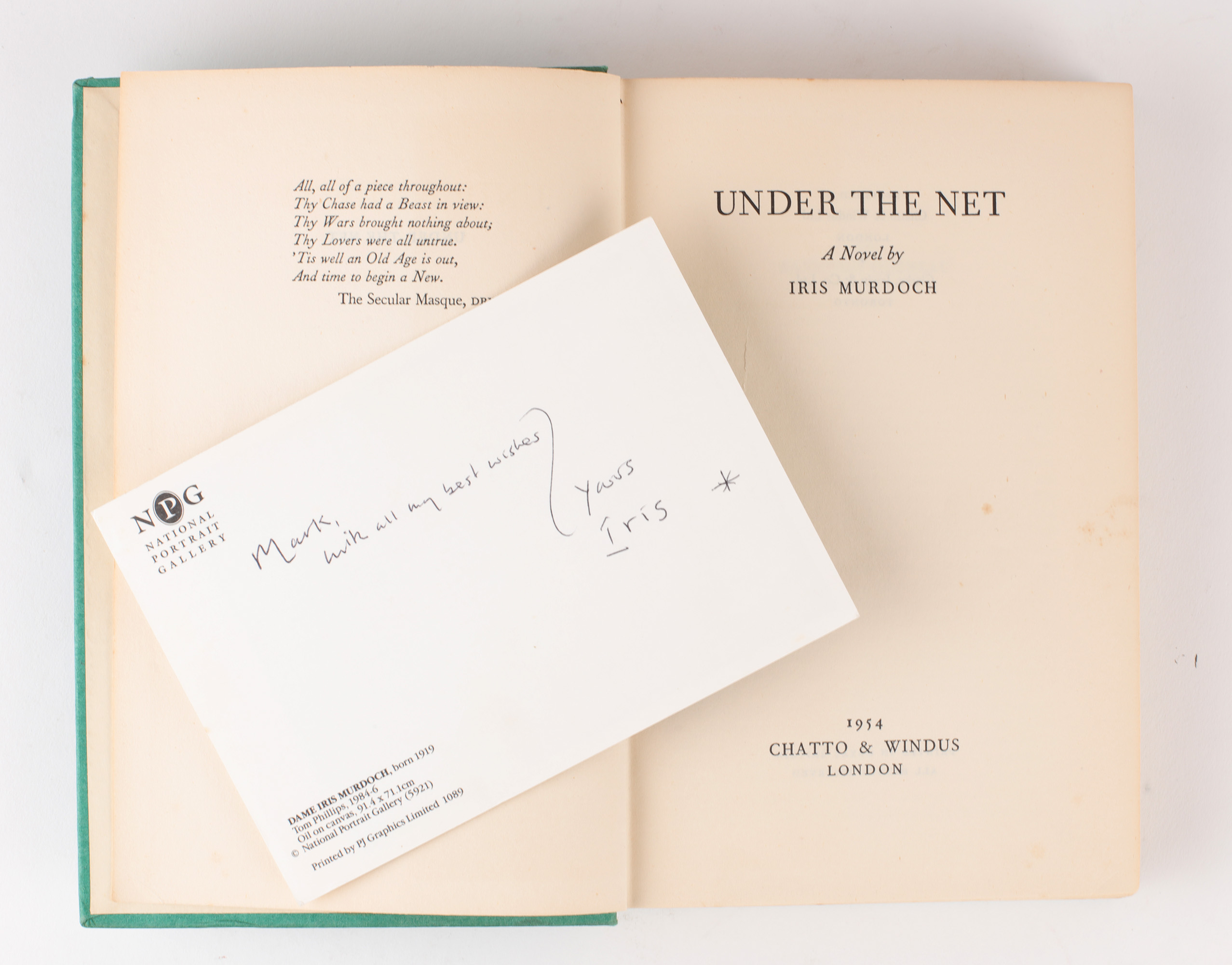 First edition. Original green cloth with gilt titles in pictorial dustwrapper designed by Victor Ross. With a postcard from the National Portrait Gallery, signed and inscribed by Murdoch. A very good copy in a good dustwrapper, a little worn with some loss to the spine ends, a couple closed tears and some toning to the spine.