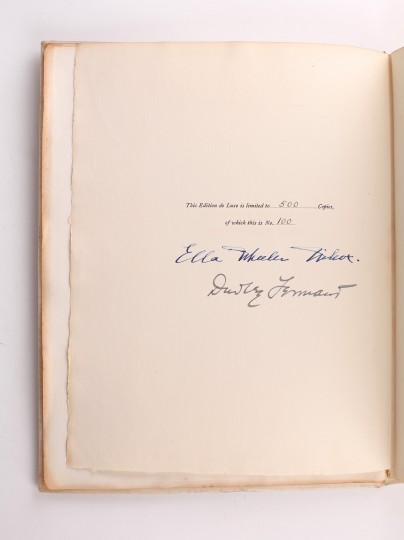 First deluxe edition with illustrations by Dudley Tennant. 4to. Number 10 of 500 copies signed by both poet and artist. Cream vellum with gilt lettering and decoration. Top edge gilt. Twenty tipped in colour plates under captioned tissue guards. A very good copy indeed, with slight dustiness to the vellum, fresh and bright internally.