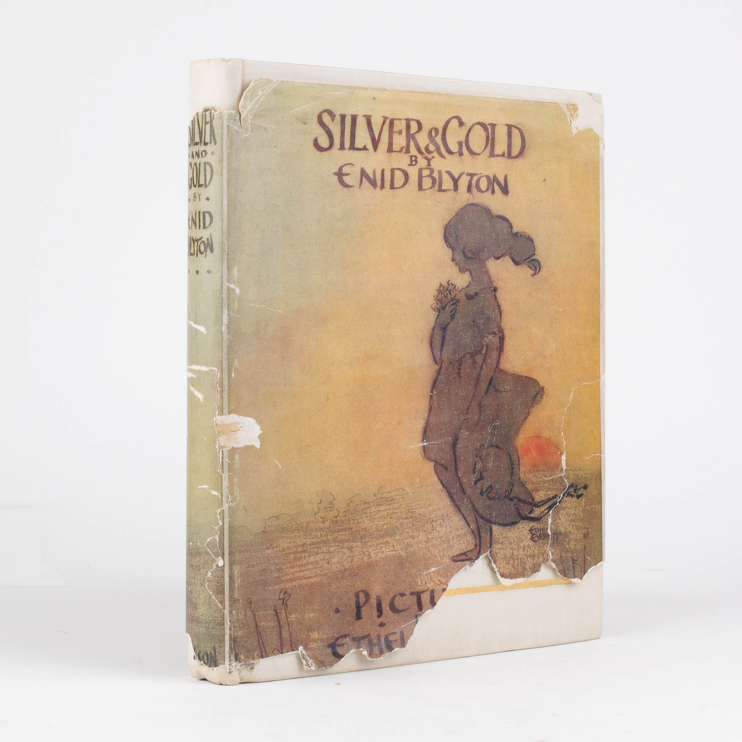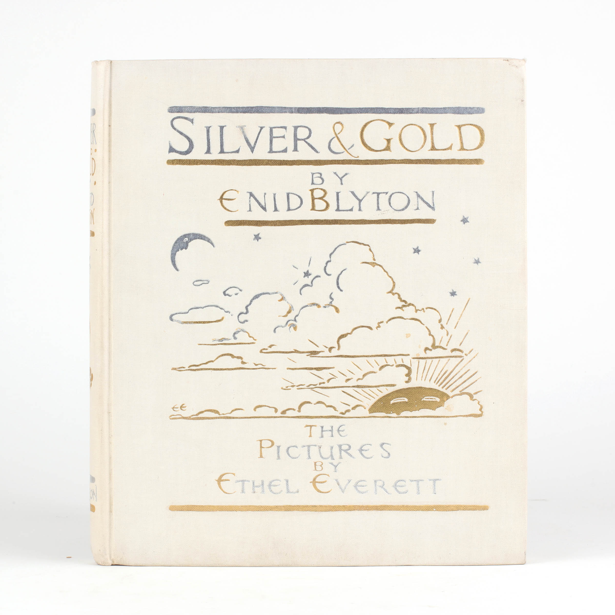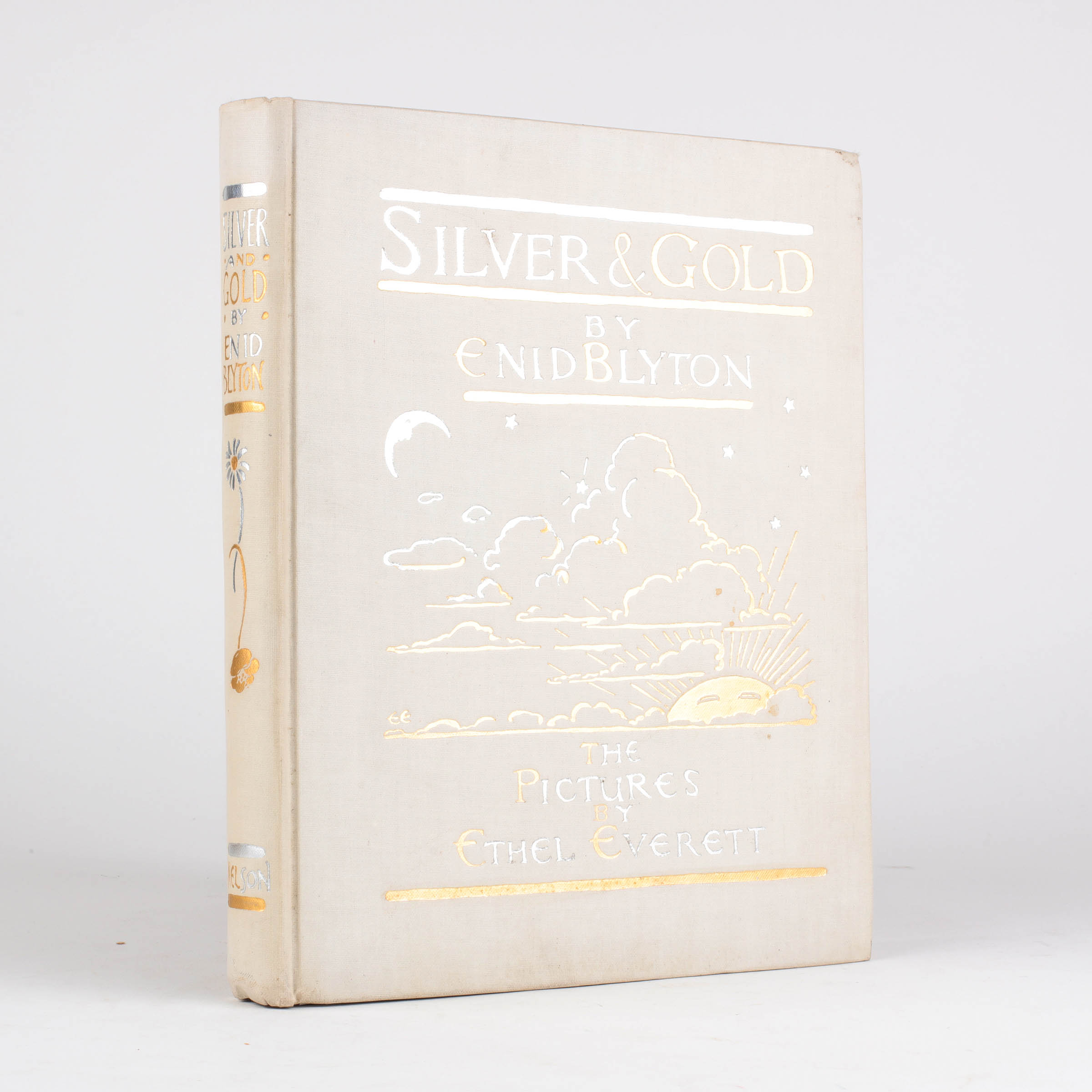 First edition illustrated by Ethel Everett. 8vo. White buckram cover decorated in silver and gold. Top edge gilt. Remnants of dustwrapper. Inscribed by Blyton on the front end paper, "Ina and Margaret with much love from the Author." Beautiful pictorial endpapers, eight full page colour illustrations and lots of line drawings. A fine book.