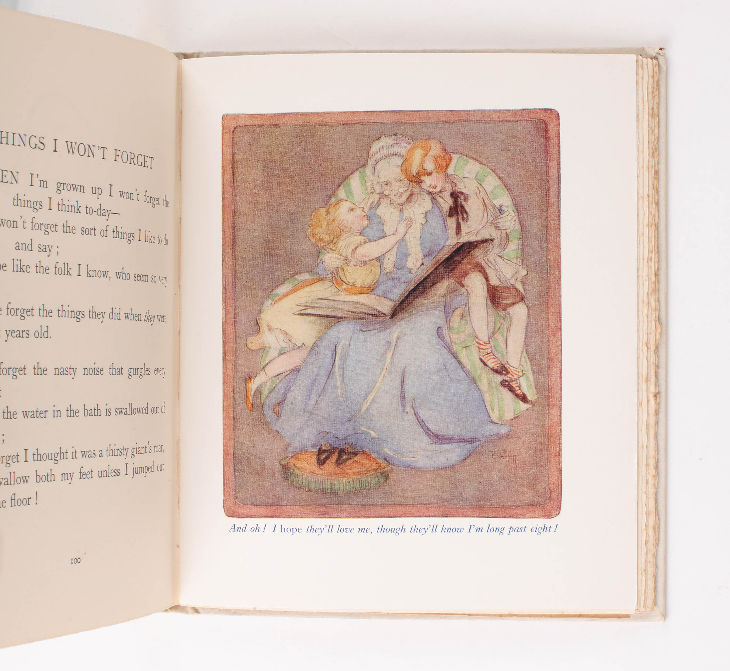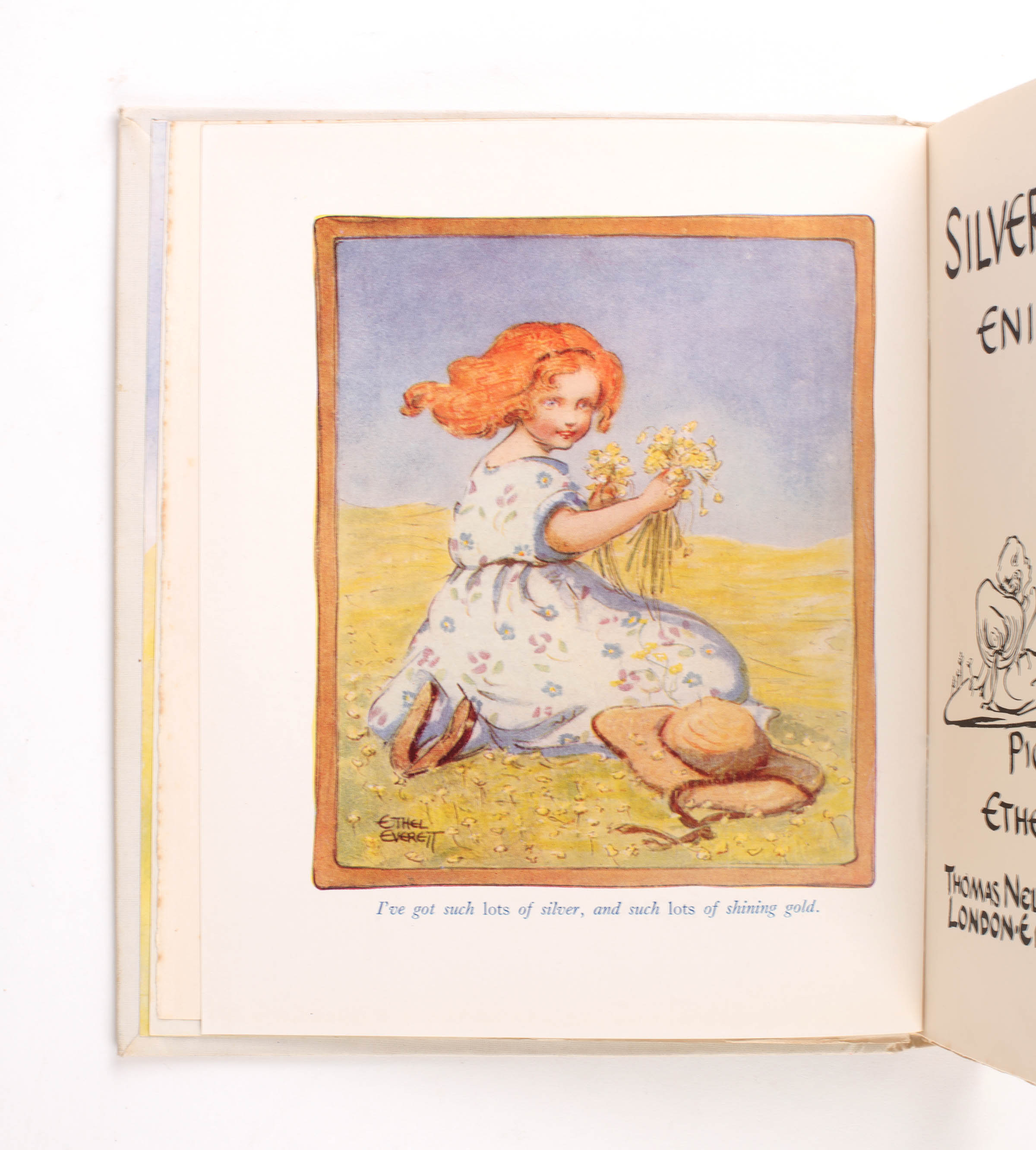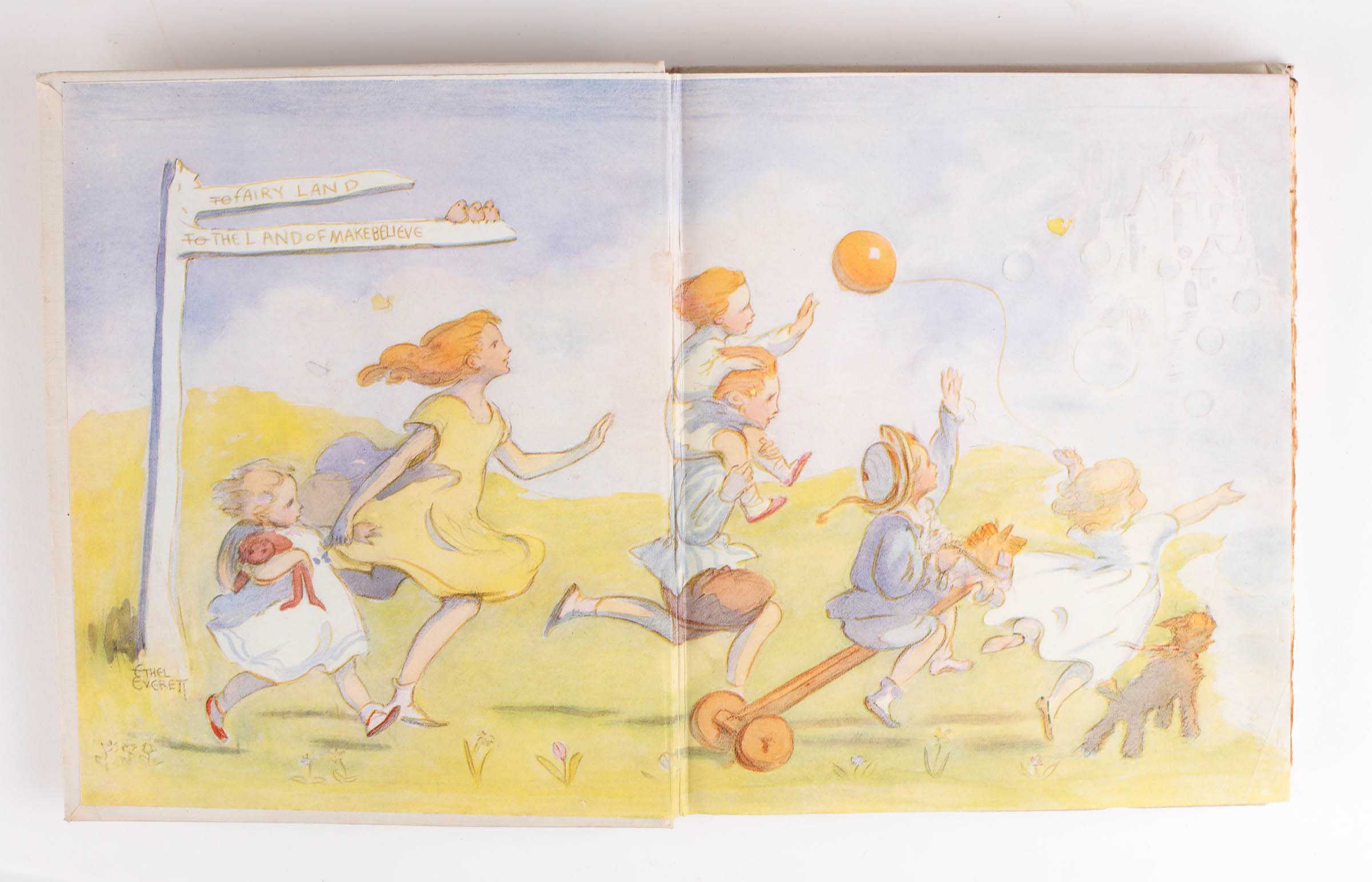 First edition illustrated by Ethel Everett. 8vo. White buckram cover decorated in silver and gold. Top edge gilt. Remnants of dustwrapper. Inscribed by Blyton on the front end paper, "Ina and Margaret with much love from the Author." Beautiful pictorial endpapers, eight full page colour illustrations and lots of line drawings. A fine book.
