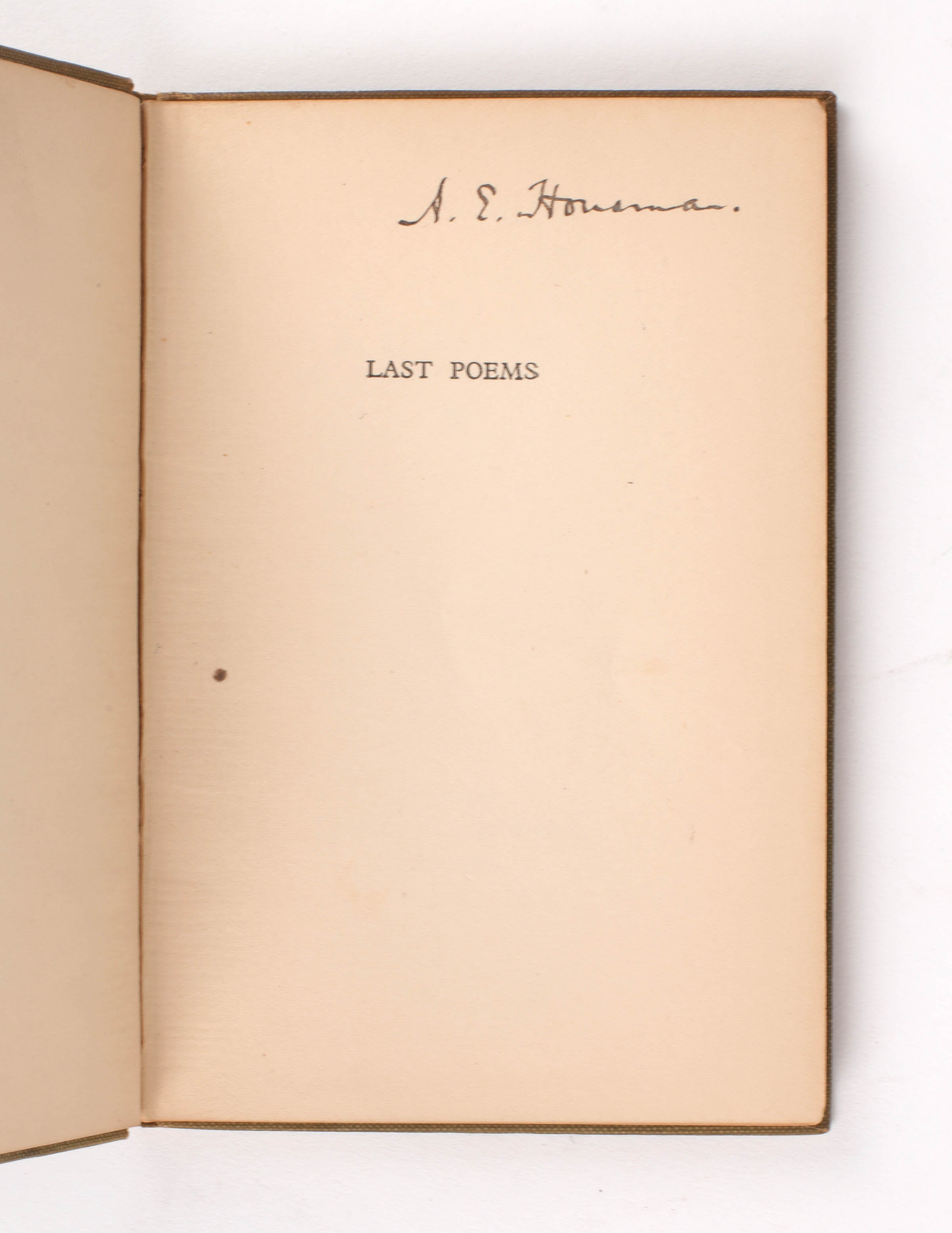 Copies of A Shropshire Lad, first published in 1896, are rarely found signed.