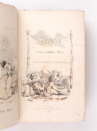 This copy is of the earliest issue according to Van Duzer, with the heading of p.1 in rustic, the suppresed woodcut of the Marquis of Steyne to p. 336 present, and "Mr Pitt" for "Sir Pitt" to p. 453.