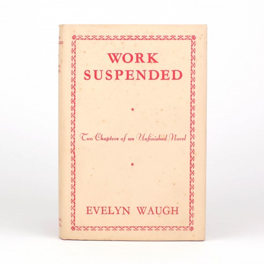 Work Suspended was the title give to the fragments of a novel Waugh abandoned to take up active service. It was published on Waugh's return in edition of just 500 copies, making making it quite uncommon, particularly in such a well preserved dustwrapper.