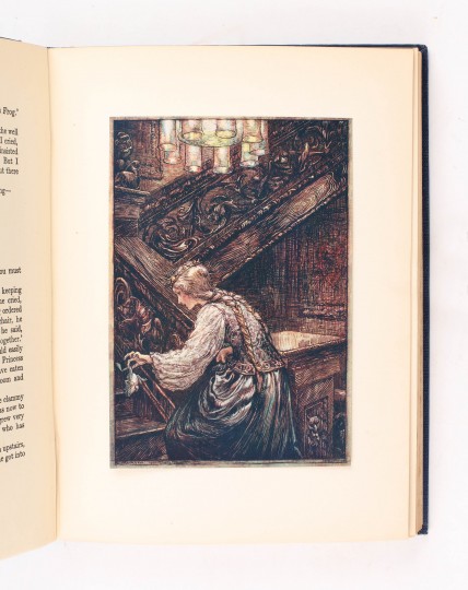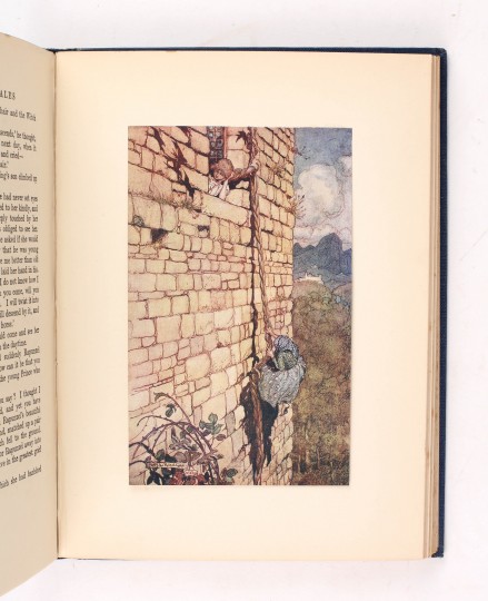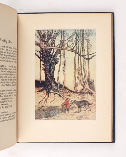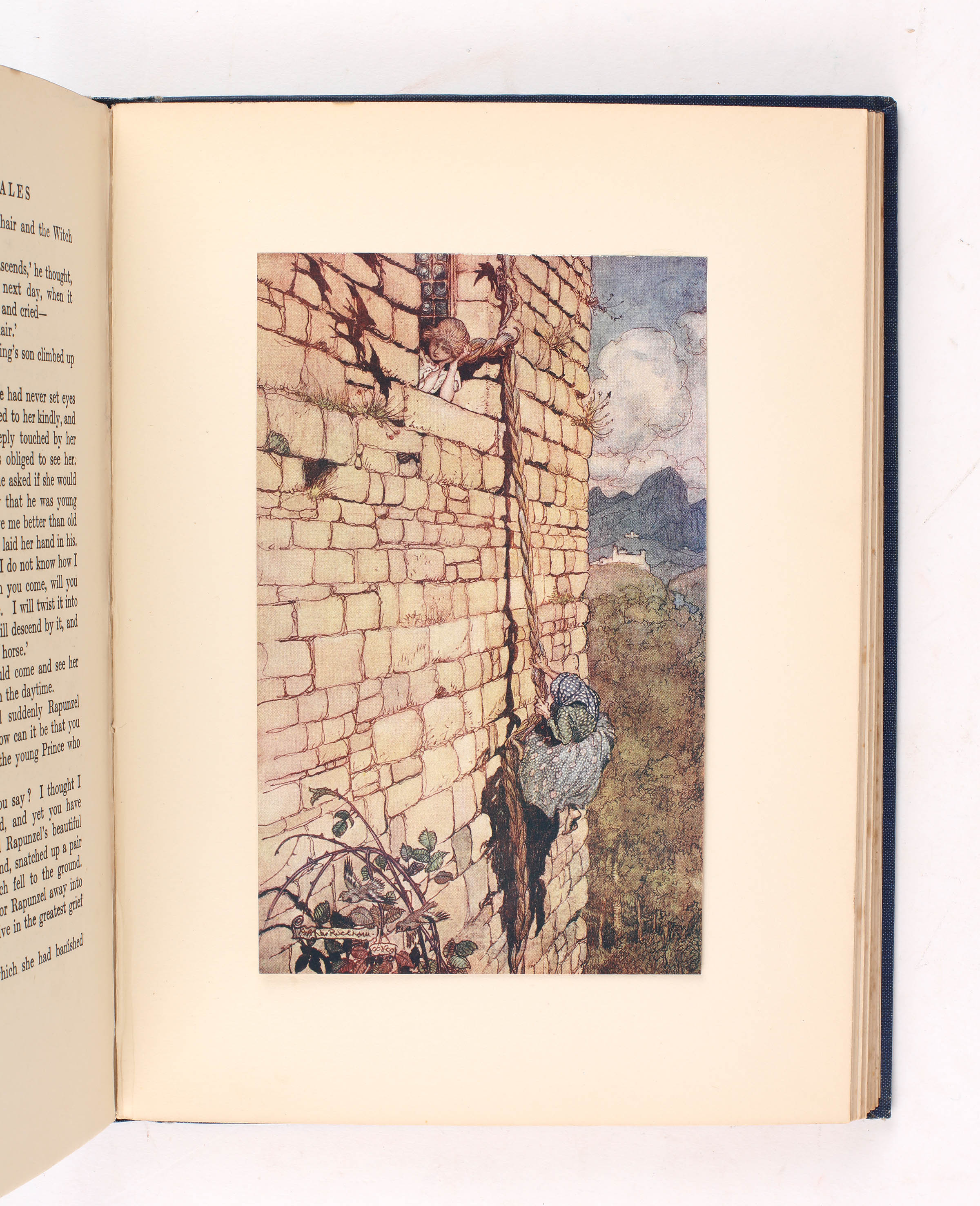 First edition thus. 4to. Blue cloth with gilt lettering and vignettes. Top edge blue. In original dustwrapper. Twenty colour plates are mounted onto stiff cream paper and there are 28 line drawings, some magnificent images accompany these classic fairy stories. A near fine copy; three plates with creased corners, in a very good dustwrapper indeed with a tanned spine and chips to the spine's head.