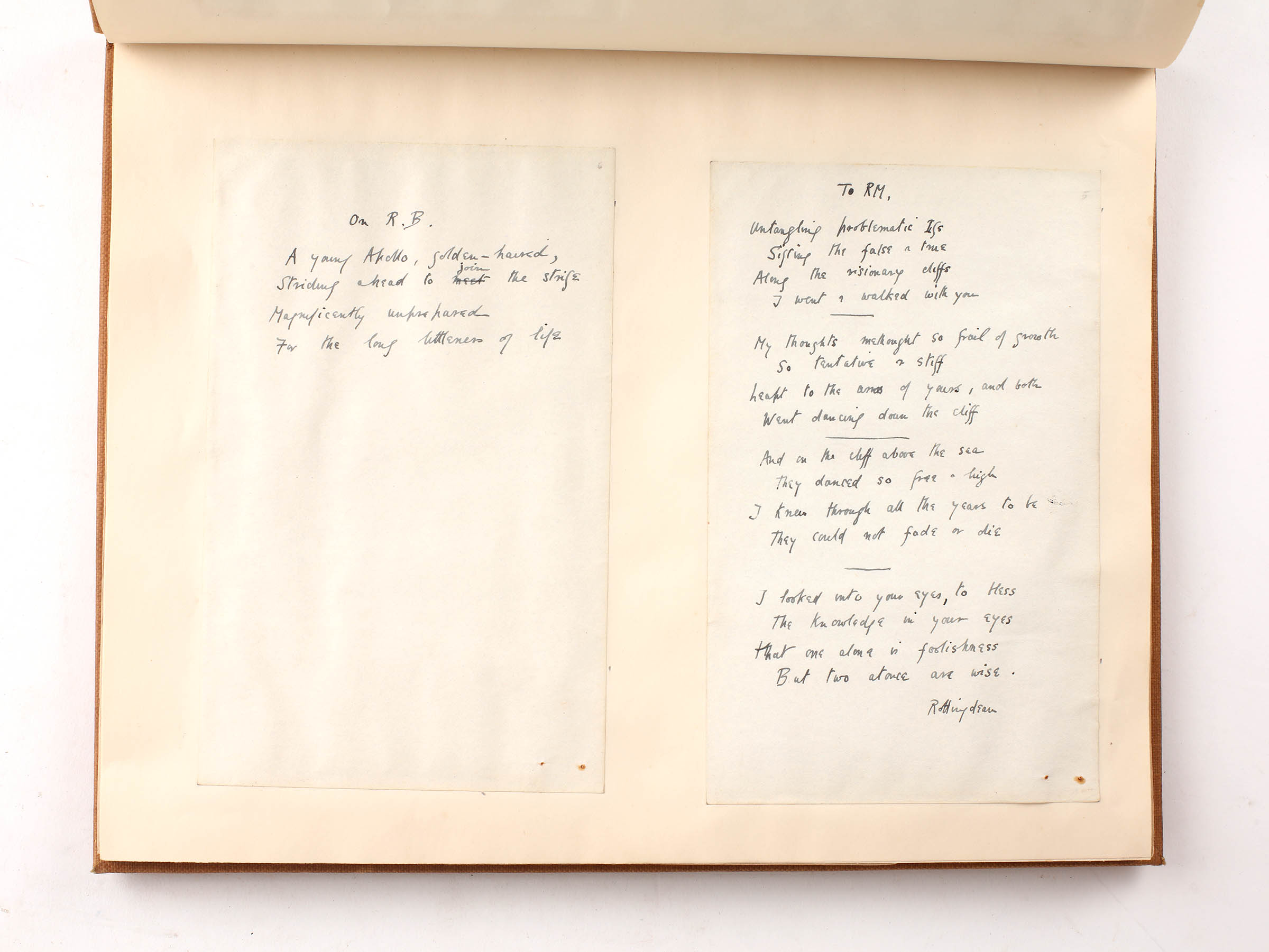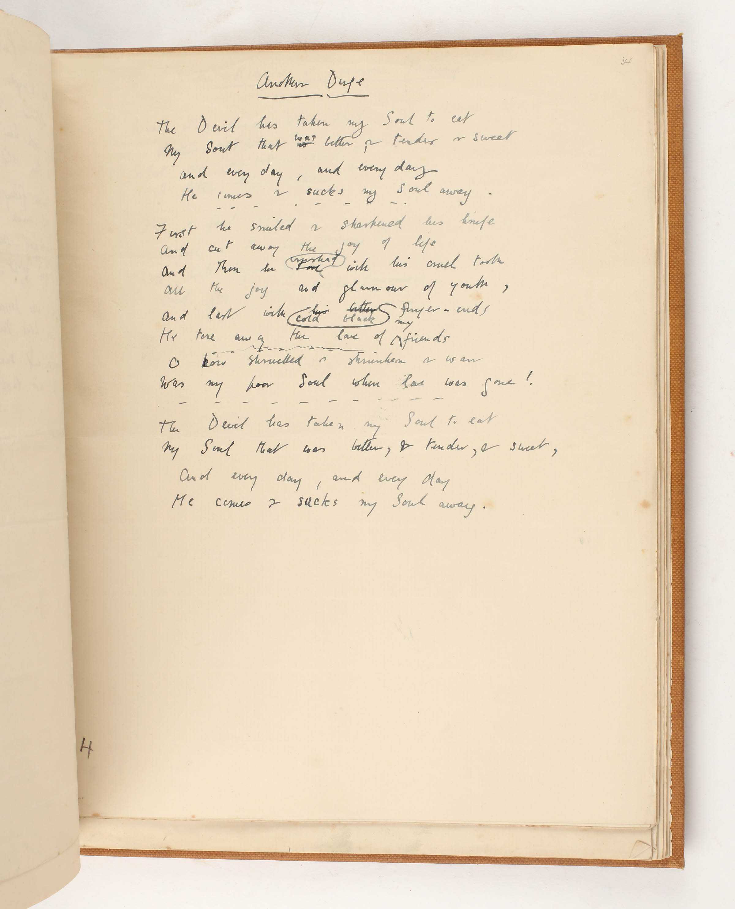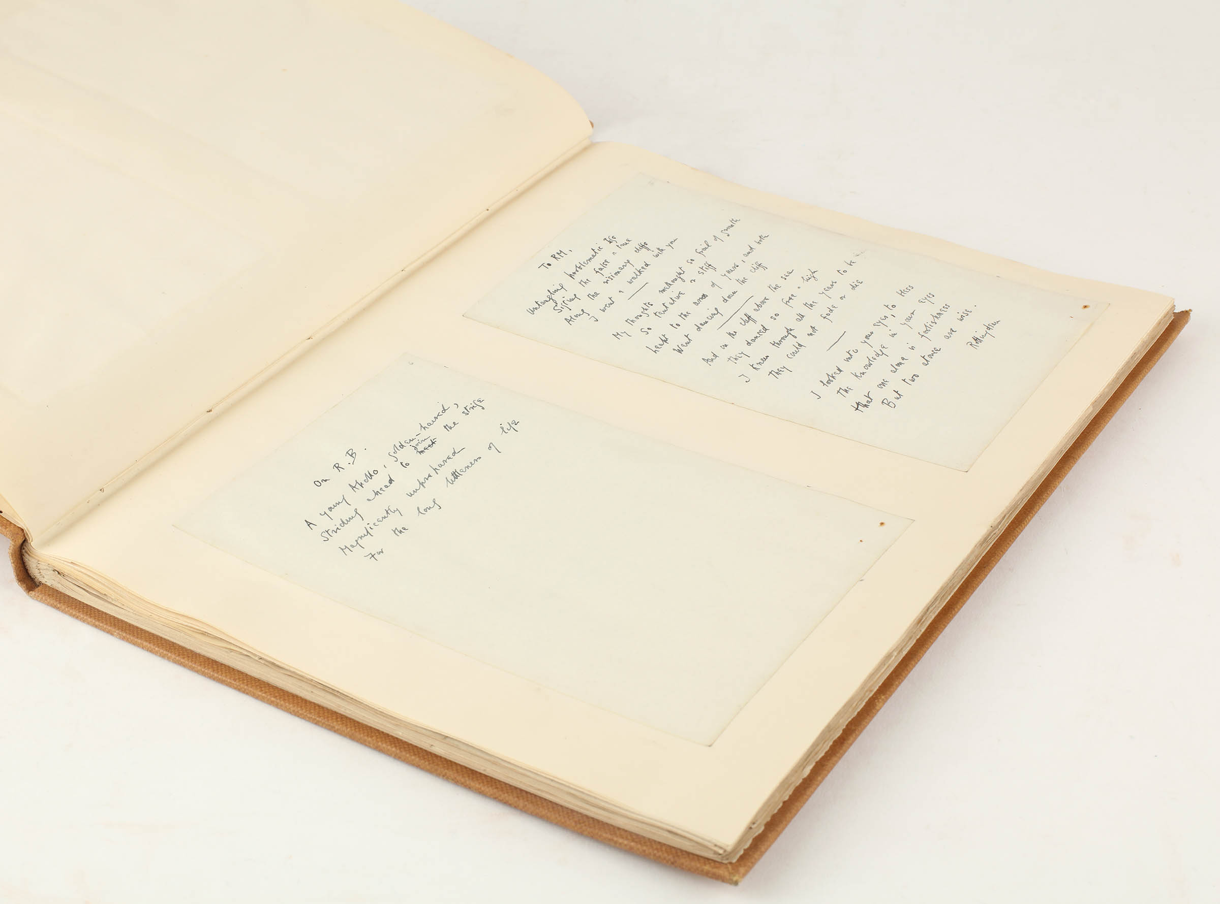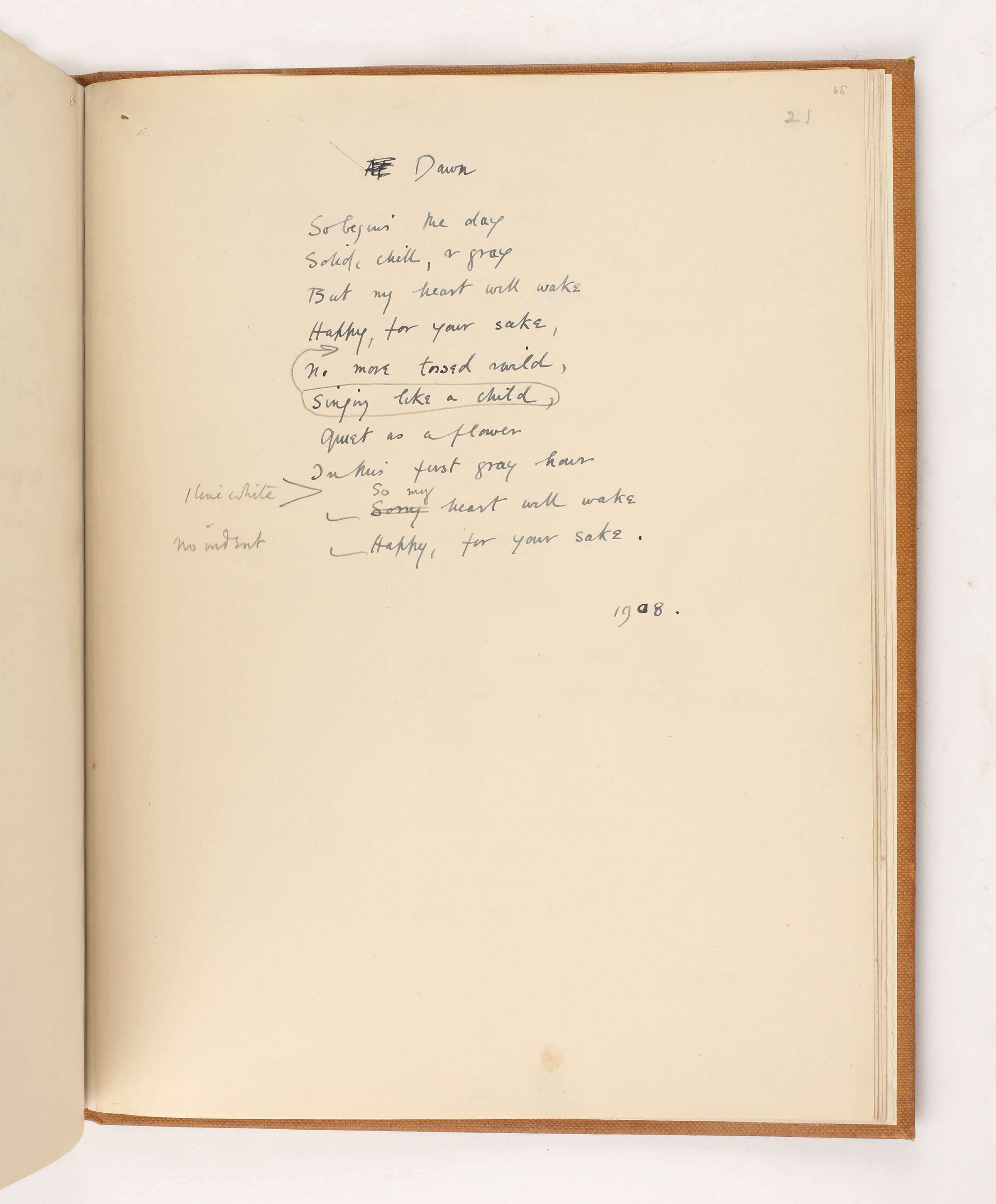 PROVENANCE: William Rothenstein (1872-1945, artist and writer, presentation inscription from Cornford on first mounted sheet and a note by Rothenstein to the fort endpaper, "Various versions of her poemes given to me by Frances before + after she was married to Francis", presumably bound up by Rothenstein); Siegfried Sassoon (presuambly acquired from Rothenstein's estate before 1954, letter from Cornford to Sassoon refering to his possession of her manuscripts); Private collection.