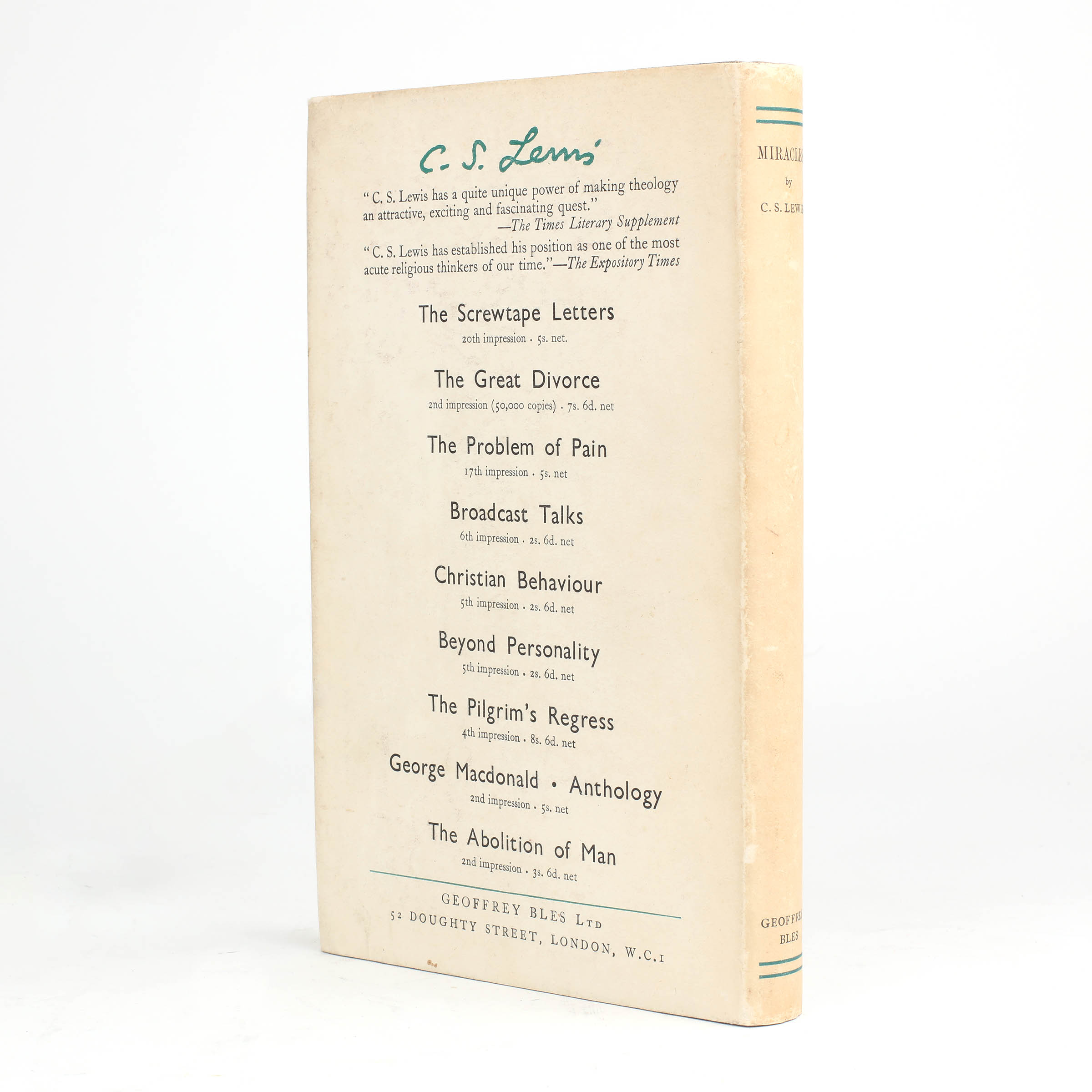 LEWIS, C.S. Miracles A Preliminary Study
