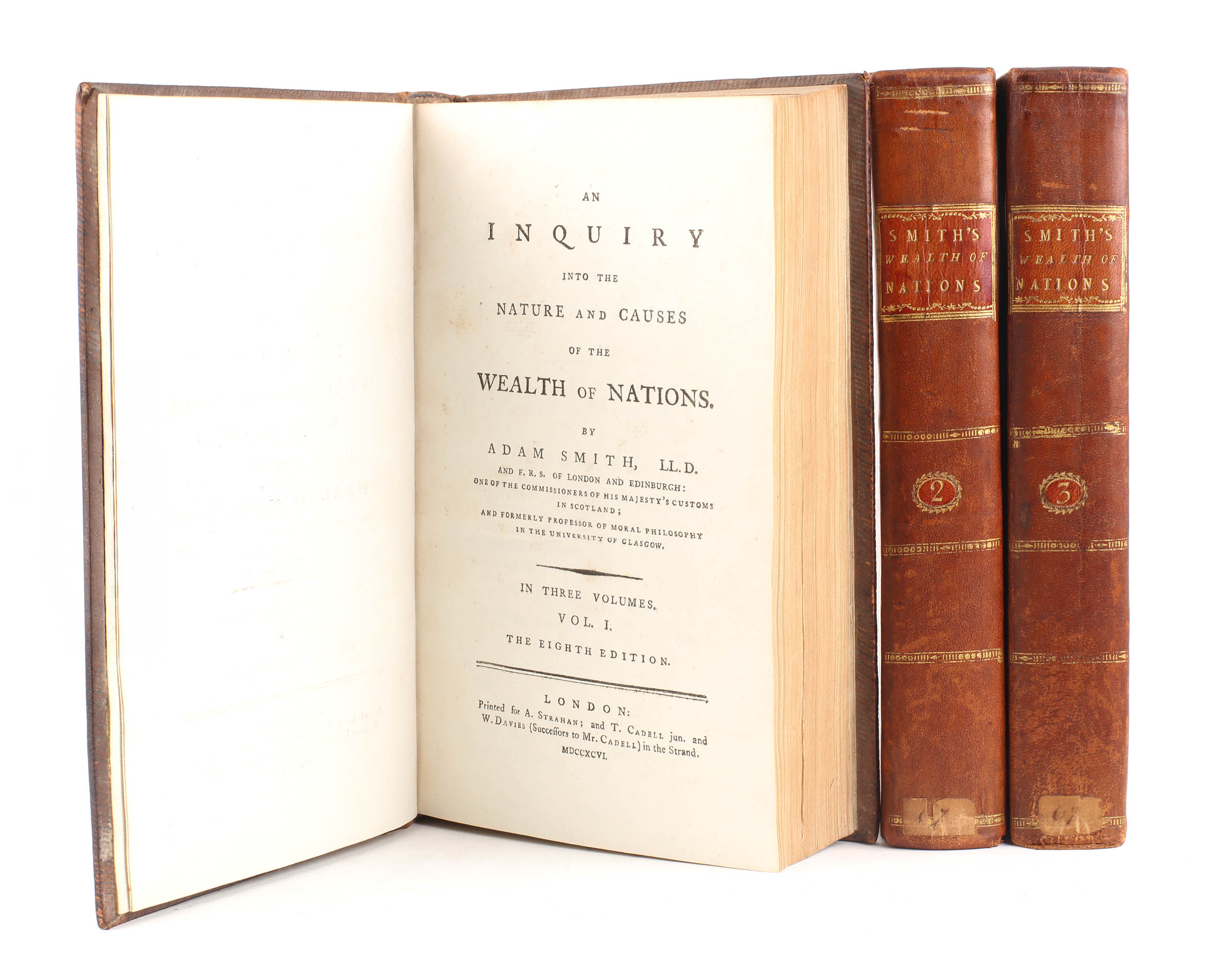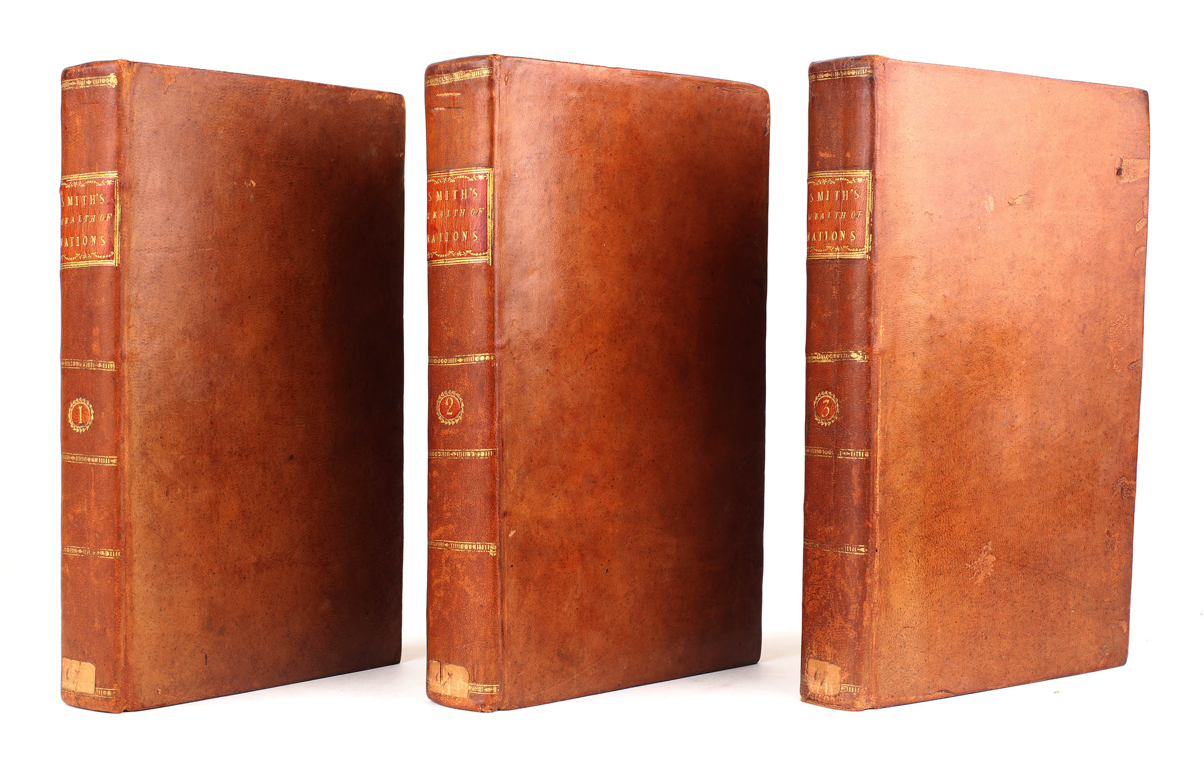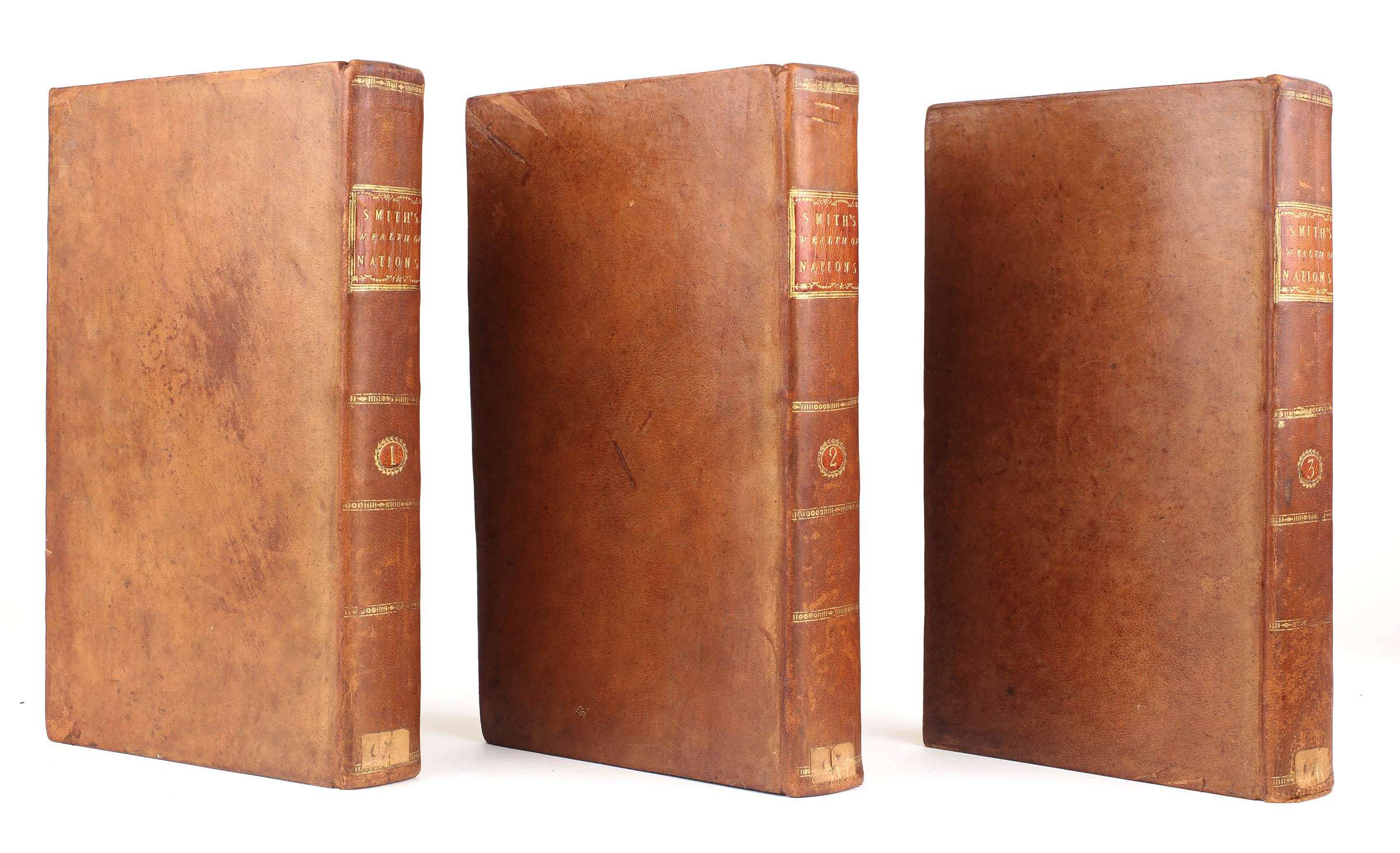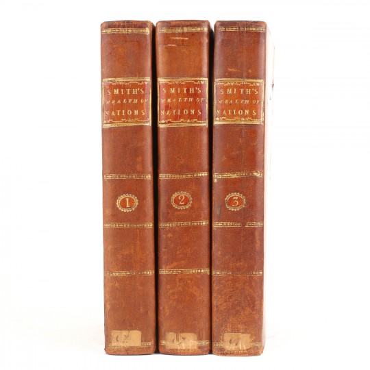 Critically regarded as the founding work of modern economic thought, Adam Smith (1723-1790) began writing his magnum opus in Toulouse in 1763 spending the next decade in perfecting it. The first edition was published in two octavo volumes in 1776, changing format to a more manageable three octavo volumes with the third edition of 1784. In all there were nine eighteenth century editions, all of which are now uncommon in nice contemporary condition.