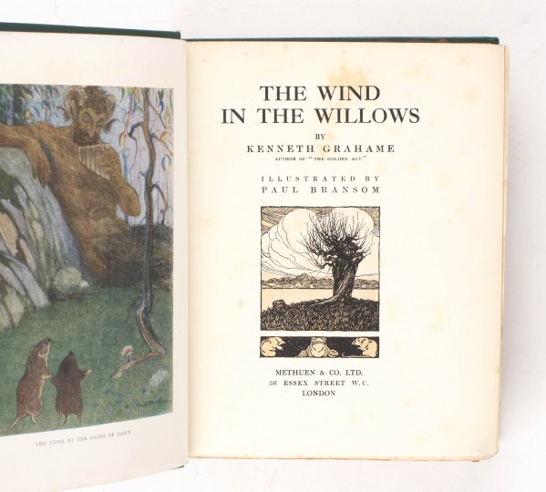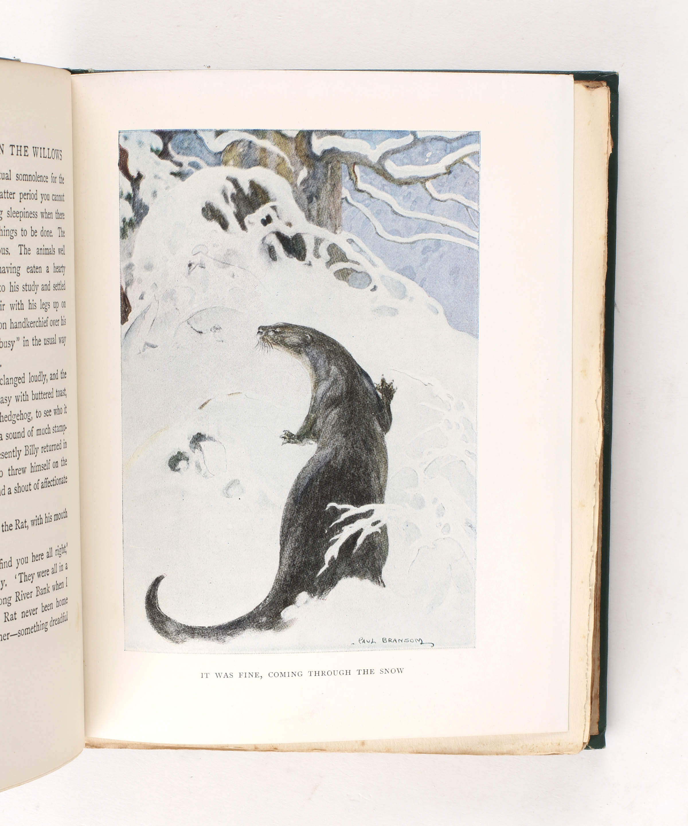 This is the first illustrated version of Grahame's tales of the river bank. The first edition of the book has only the frontispiece by Robertson and no other illustrations. Bransom is the first of many to enjoy the role of illustrator.