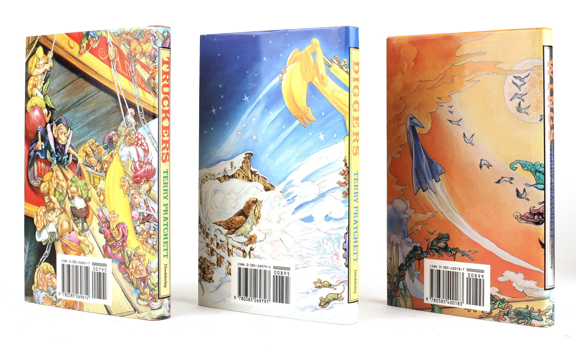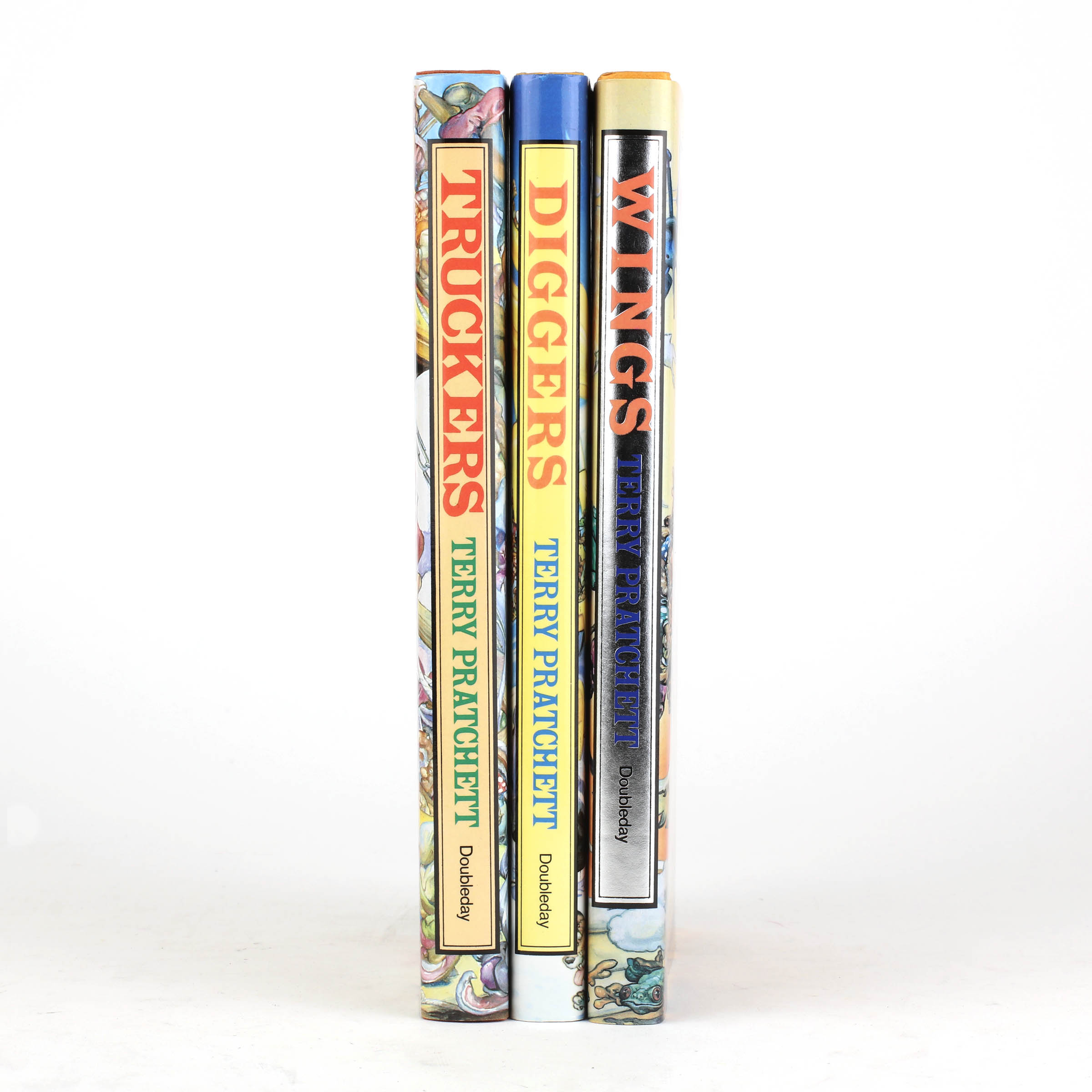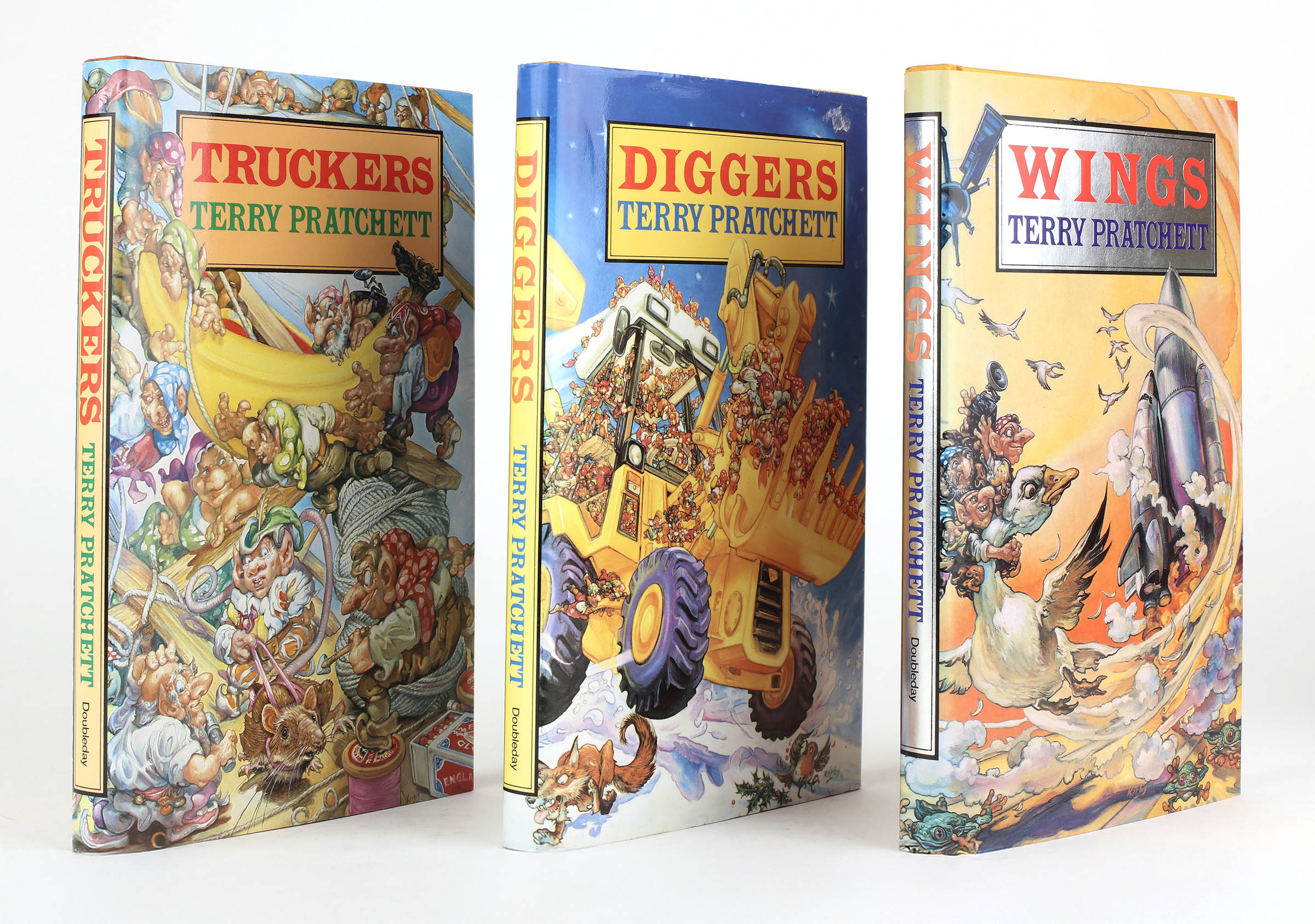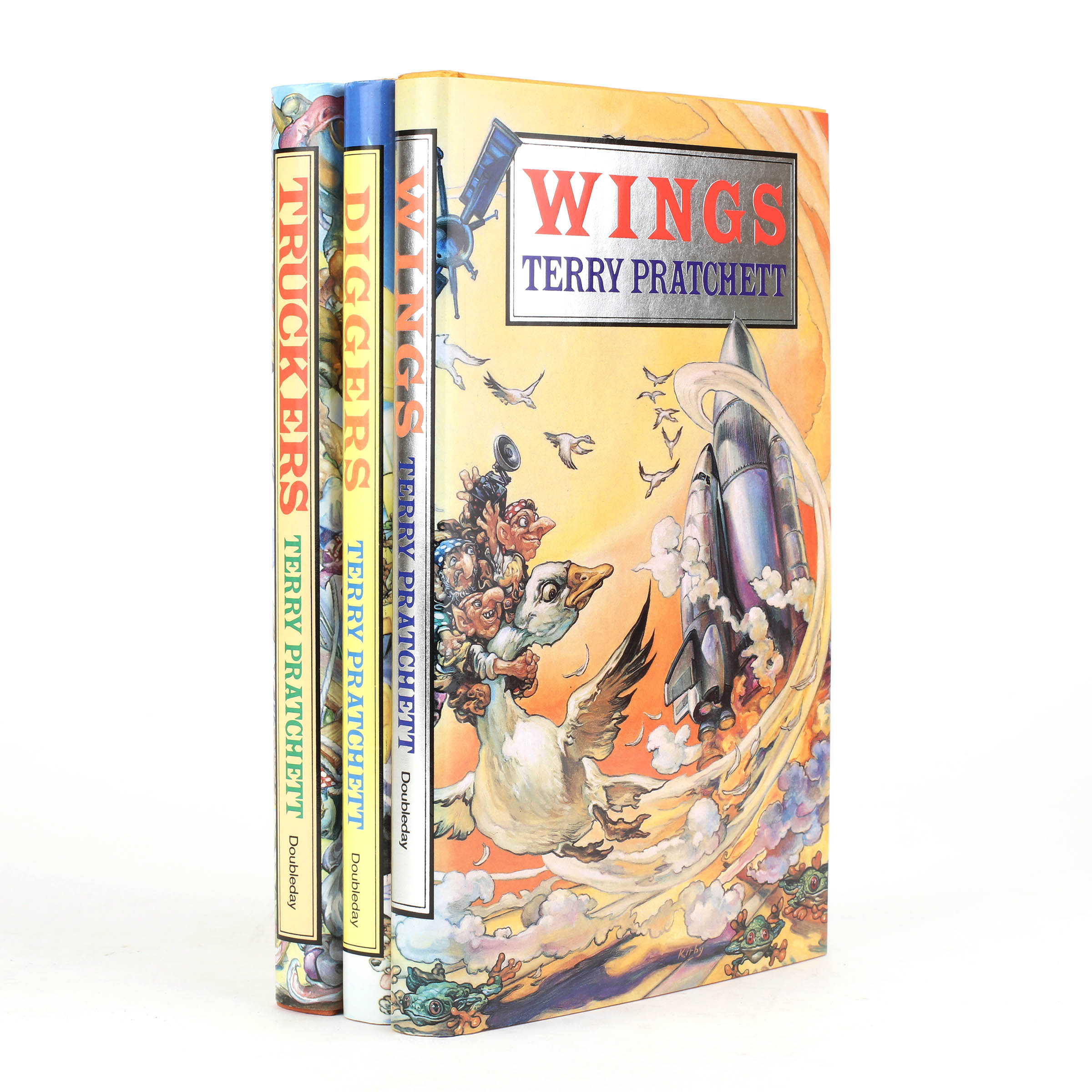 Three volumes. All first editions. Original orange boards in pictorial dustwrappers with distinctive design by Josh Kirby. Diggers signed to the title page. Fine copies, Wings and Truckers in fine dustwrappers, Diggers in a very good dustwrapper indeed, with a small sticker remnant to upper corner and internal tape repairs to the upper edges.