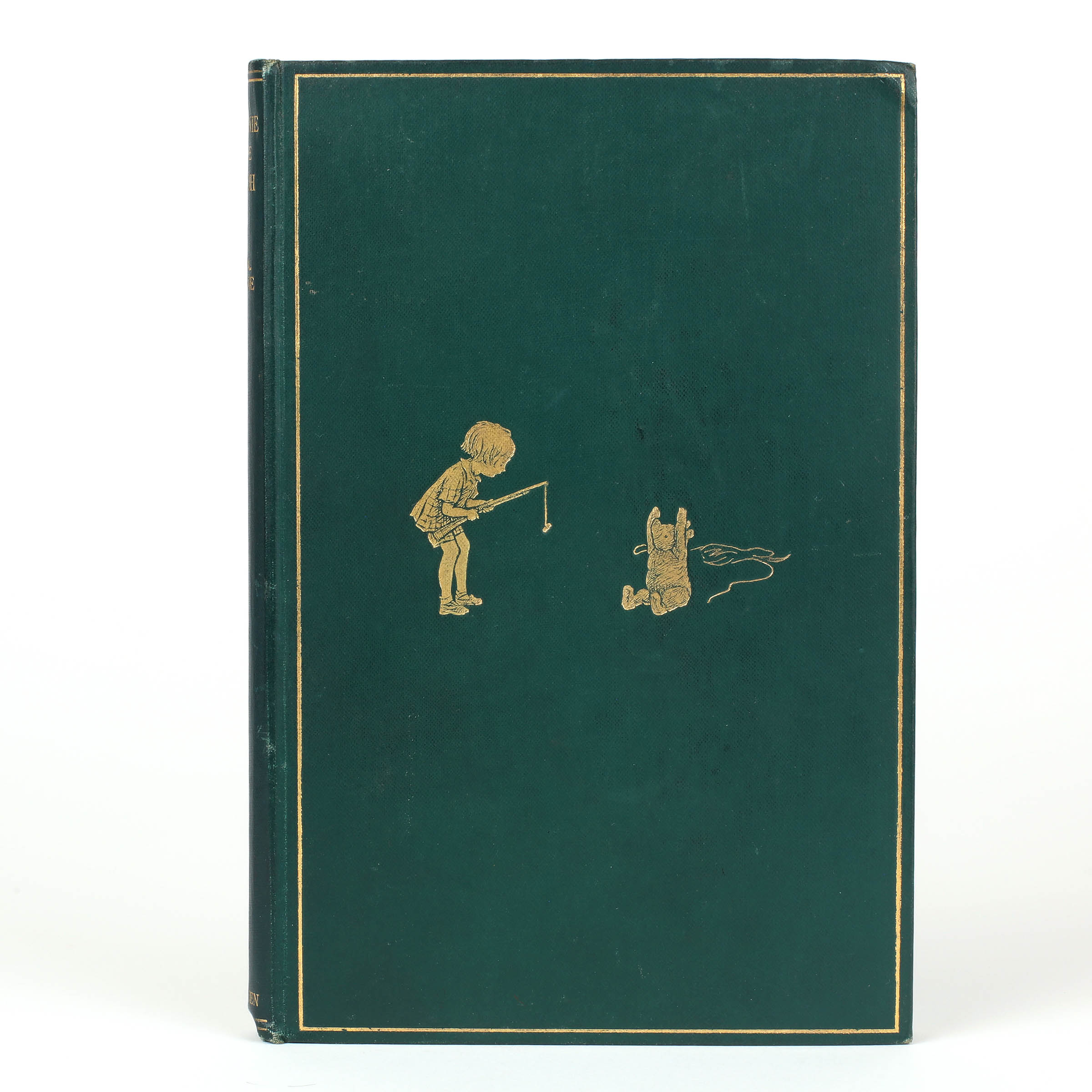 First edition. 8vo. Green cloth with gilt lettering and vignettes of Christopher Robin and Winnie the Pooh on the upper cover. Top edge gilt. The pictorial endpapers show a map of "100 Aker Wood" and the book is illustrated throughout with the unmistakable line drawings of E.H. Shepard. A very good copy, some light finger marks throughout.