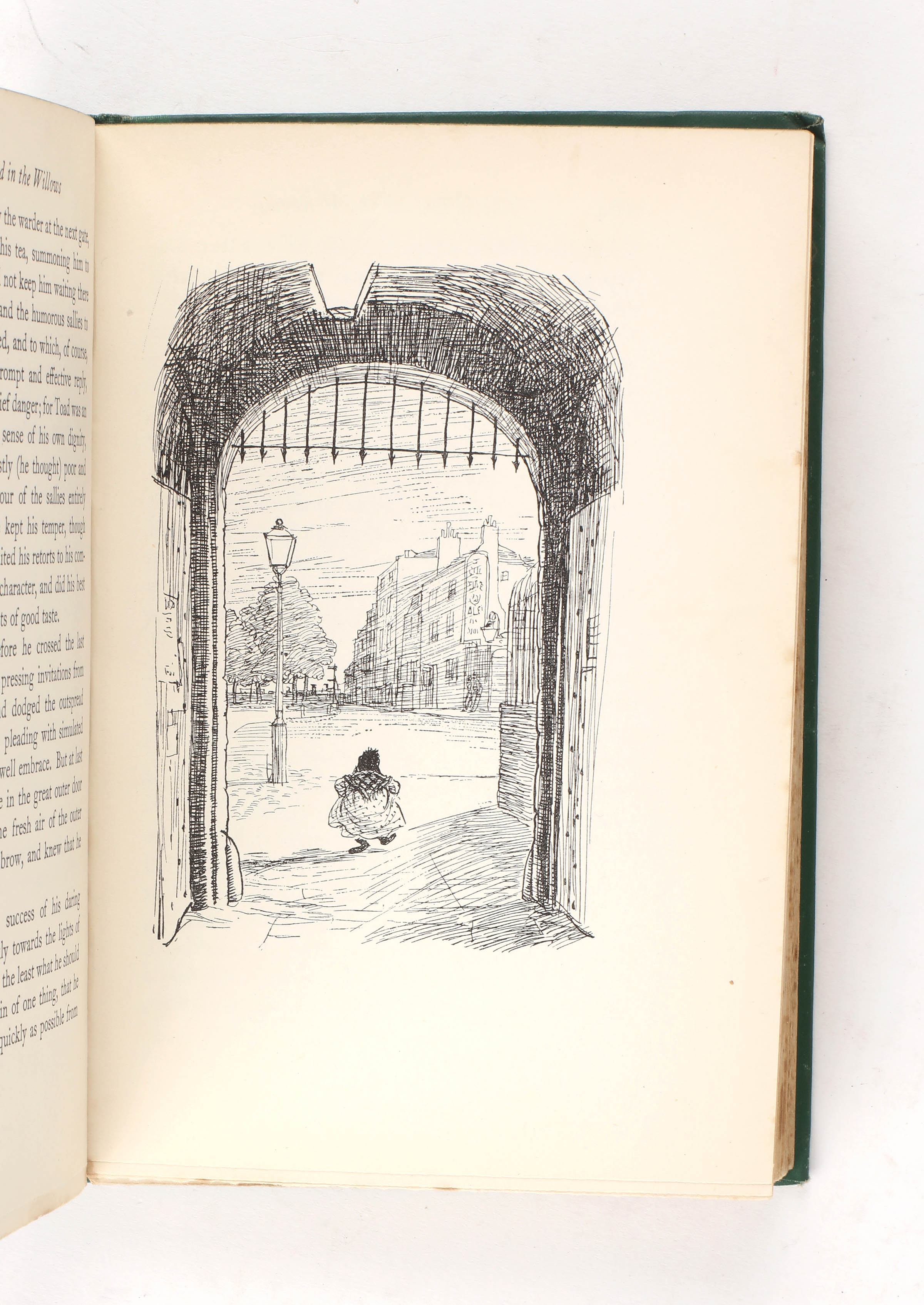 Grahame's children's classic was originally published in 1908 with no illustrations in the text. Although the work was subsequently illustrated by several artists, none matched the success of the text until, E.H. Shepard, fresh from his successful collaboration on A.A. Milne's Winnie the Pooh books, brought the narrative to life with his evocative line drawings in 1931. His illustrations have been barely out of print since and have become inexorably linked to the book.