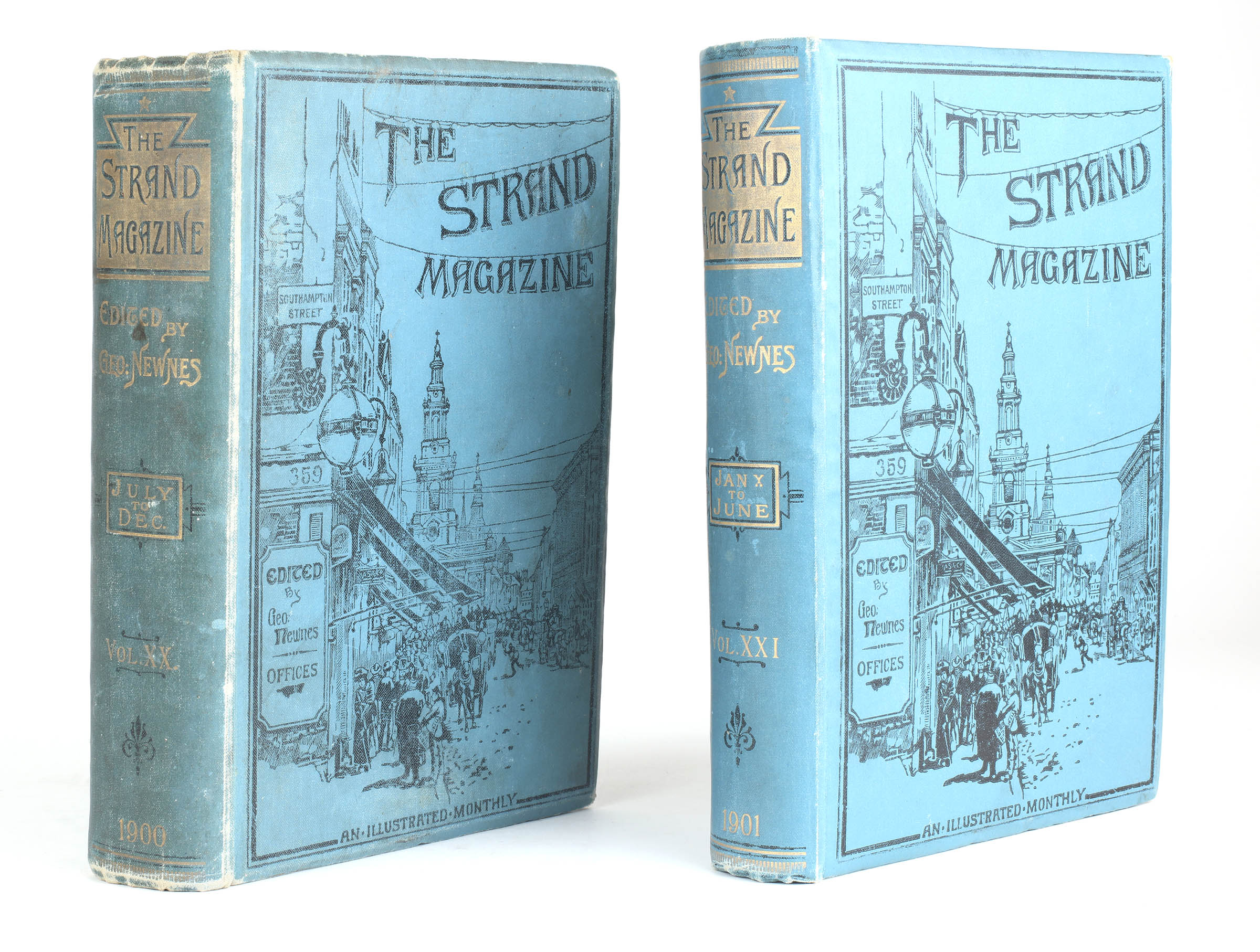 Two volumes. Publisher's original pictorial blue cloth with gilt blocked titles on the spine. Illustrated in black and white throughout. A good set, some rubbing and marks to the boards, volume twenty lacking front endpaper and with a split front hinge.