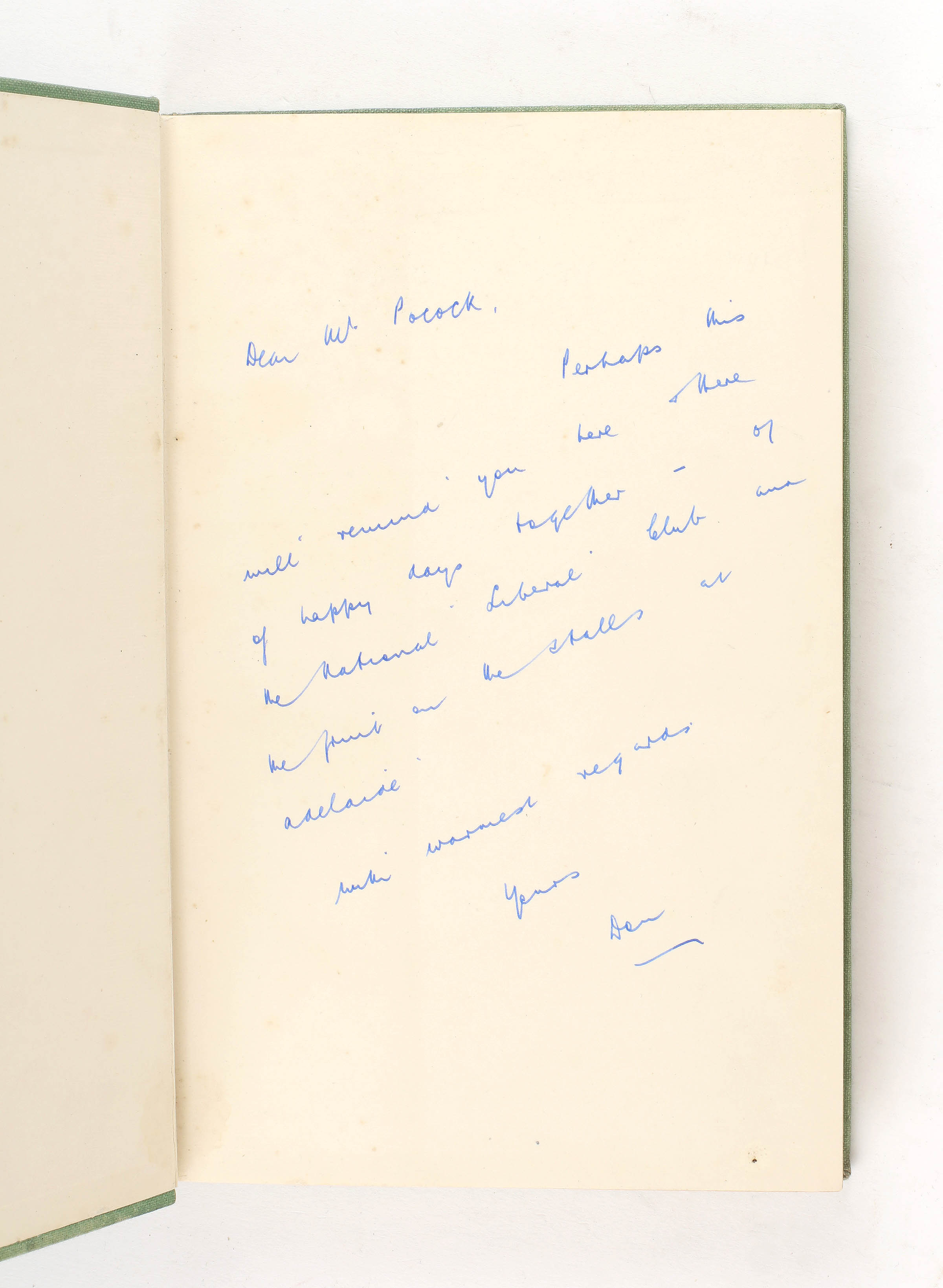 First edition. Original green cloth lettered in gilt in pictorial dustwrapper. Author's presentation copy, with an inscription filling the front endpaper, "Dear Mr Pocock, Perhaps this will remind you here + there of the happy days together - of the National Liberal Club and the print and the stalls at Adelaide. With warmest regards Yours Don" Black and white photographic illustrations throughout. A very good copy with some damp staining to the boards in a very good dustwrapper, which shows a little wear to the corners and foxing to the rear panel and flaps.