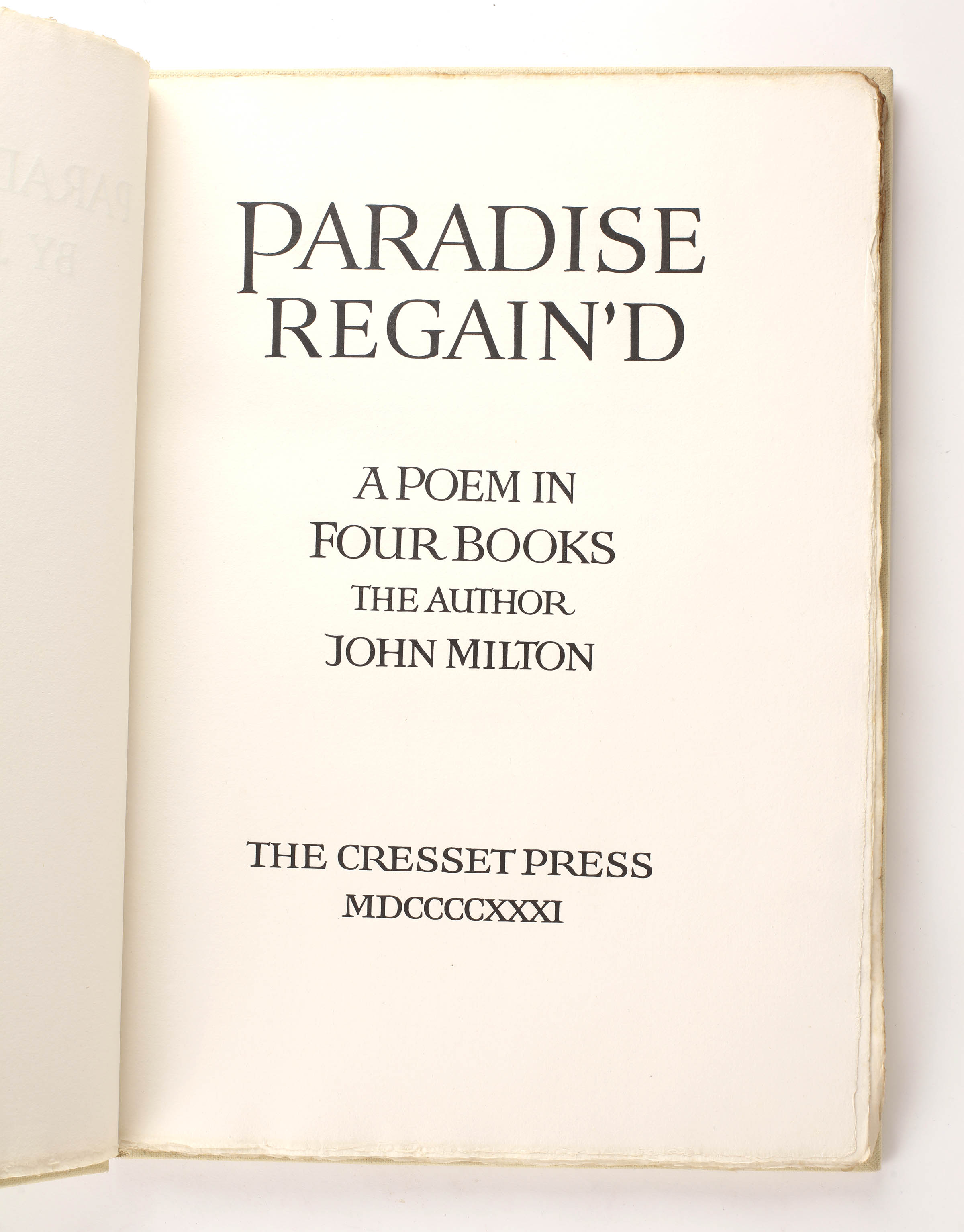 [CRESSET PRESS] MILTON, John Paradise Lost and Paradise Regain'd A Poem in Twelve Books