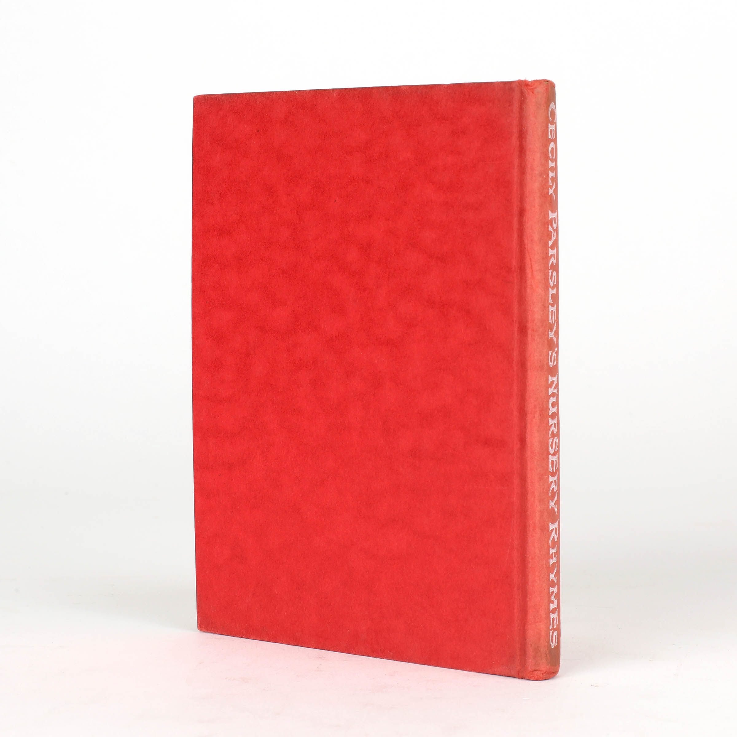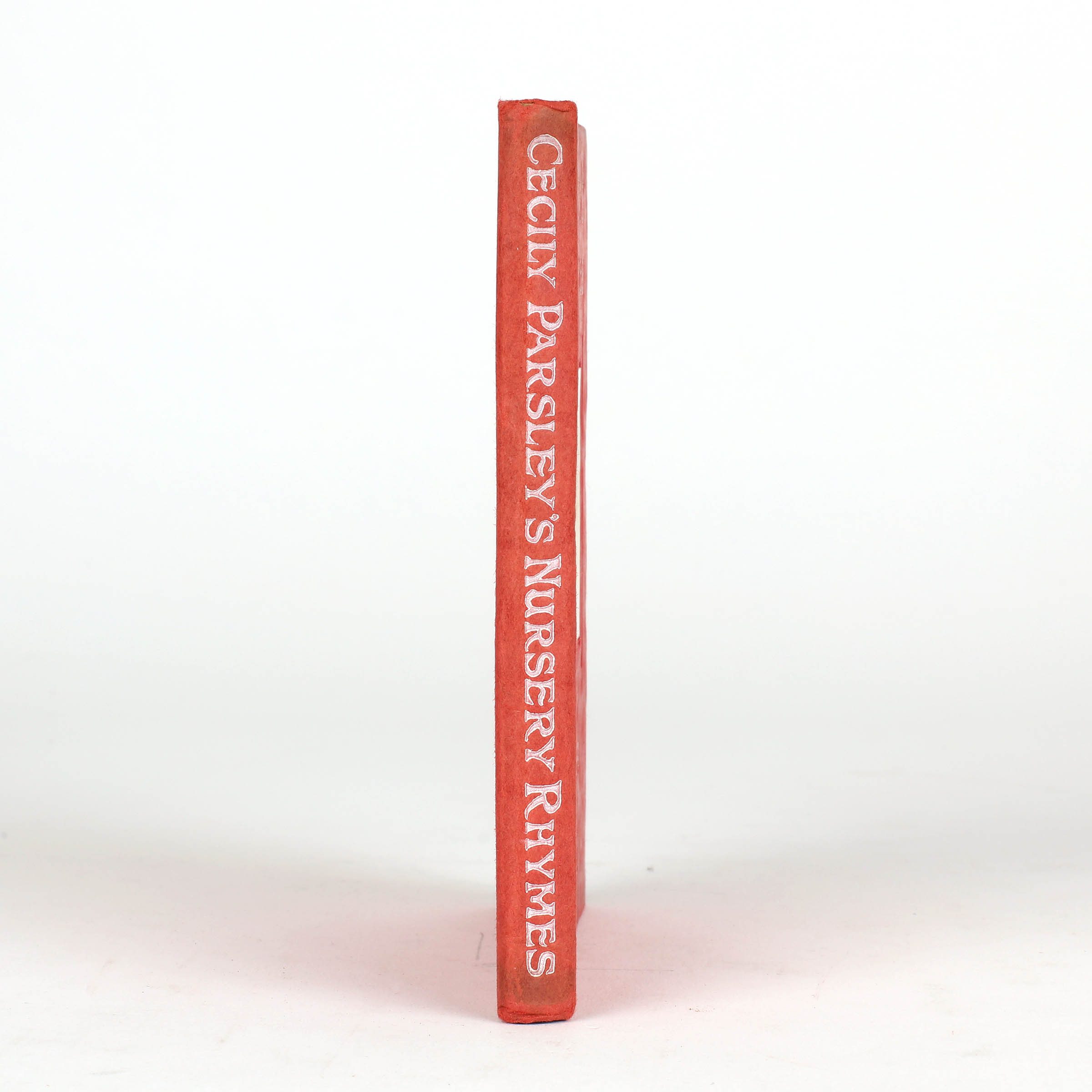 First edition. 12mo. Red paper covered boards with white lettering and colour onlay to upper cover. Pictorial endpapers and colour plates accompanying the nursery rhymes. A near fine copy, with light fading to the spine which is slightly cocked.