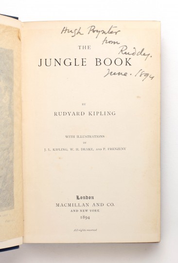 An exceptional presentation copy of the book for which Kipling is most famous and a key work of children's literature. Hugh Edward Poynter, who was 12 at the time of the presentation, was part of the artistic Poynter family and Kipling's cousin of via their respective mothers.
