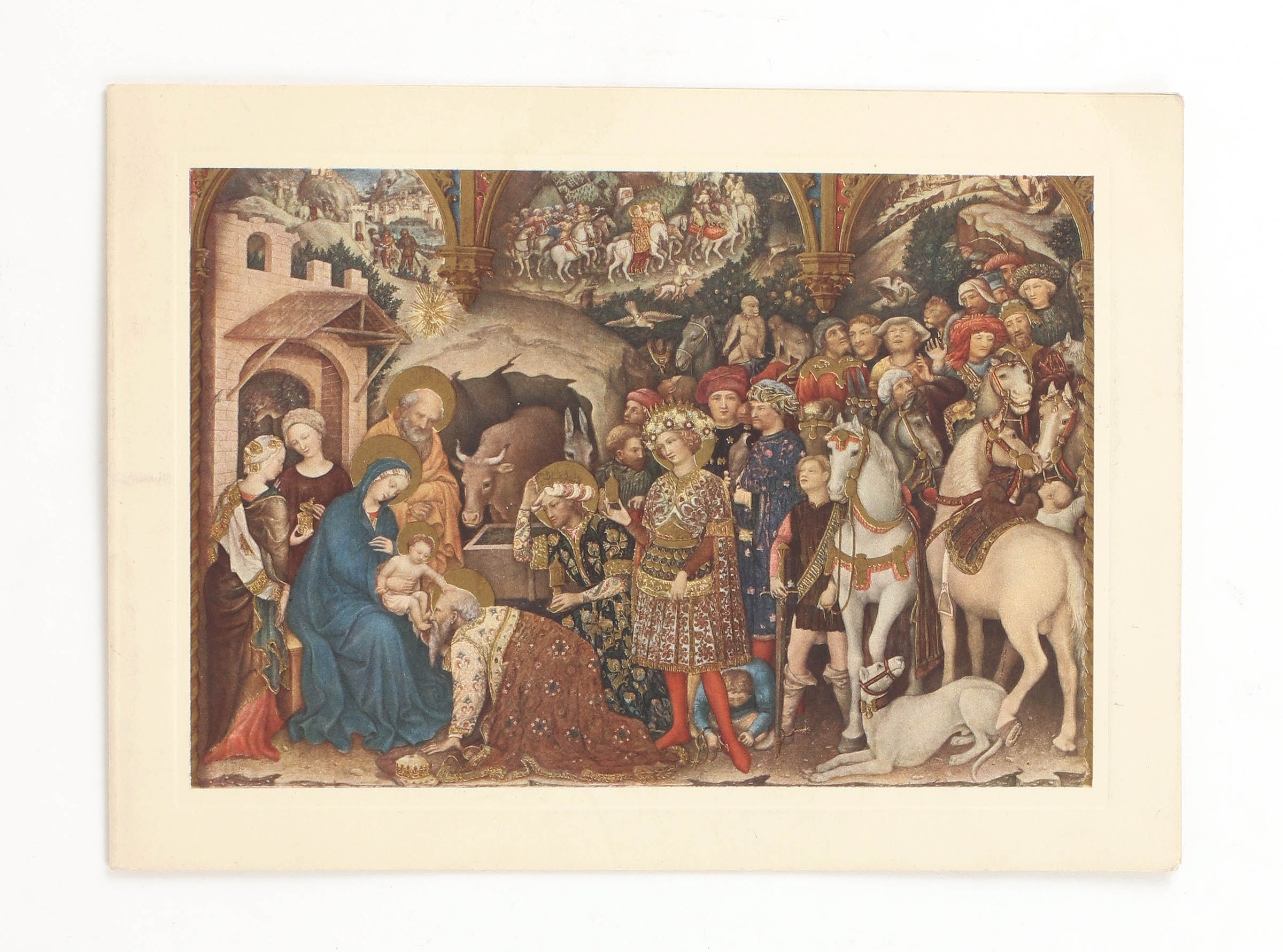 A single folded Christmas card, 168x120mm. "L'adorazione Dei Magi" illustration to cover. Inscribed in ink by Valerie Eliot "To Janet with love Valerie", and further inscribed "& Tom" by T.S. Eliot. Near fine condition, a slight crease to the corner.