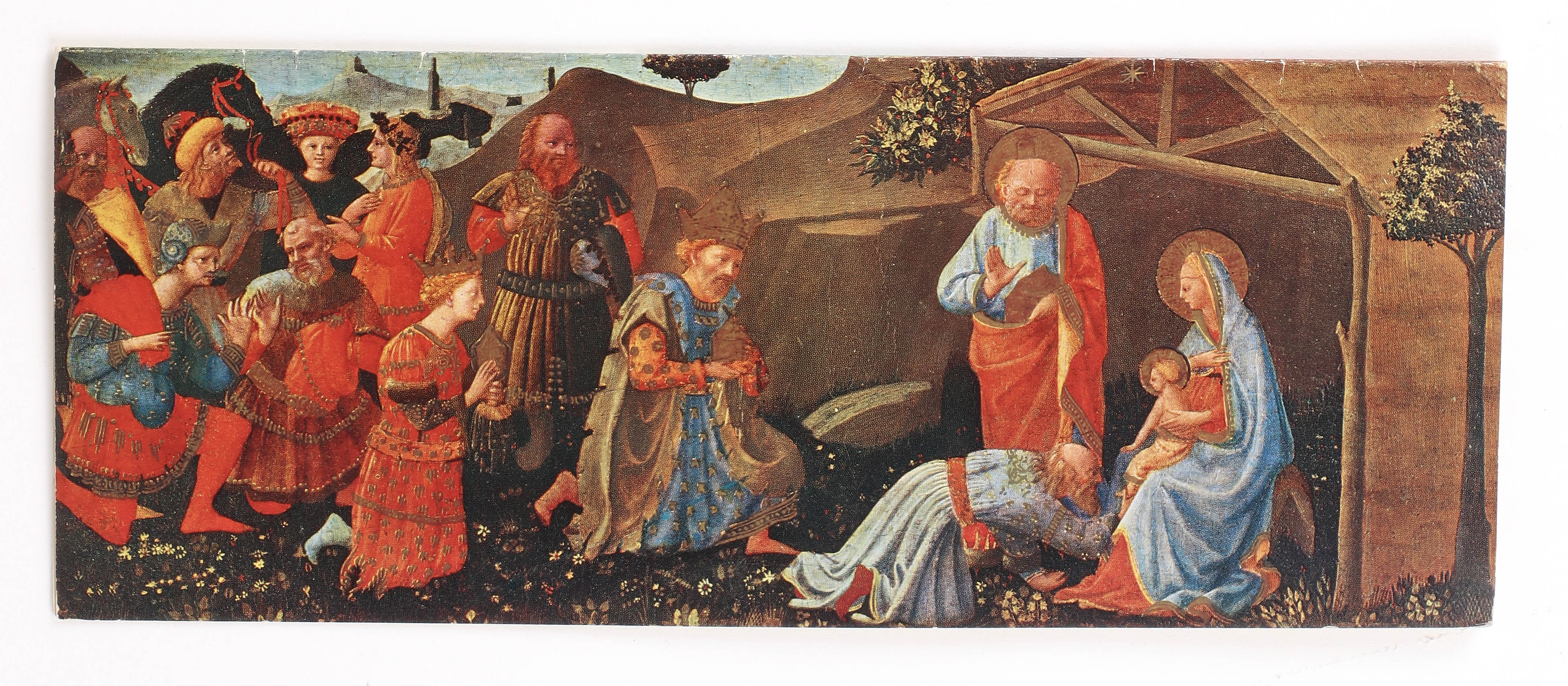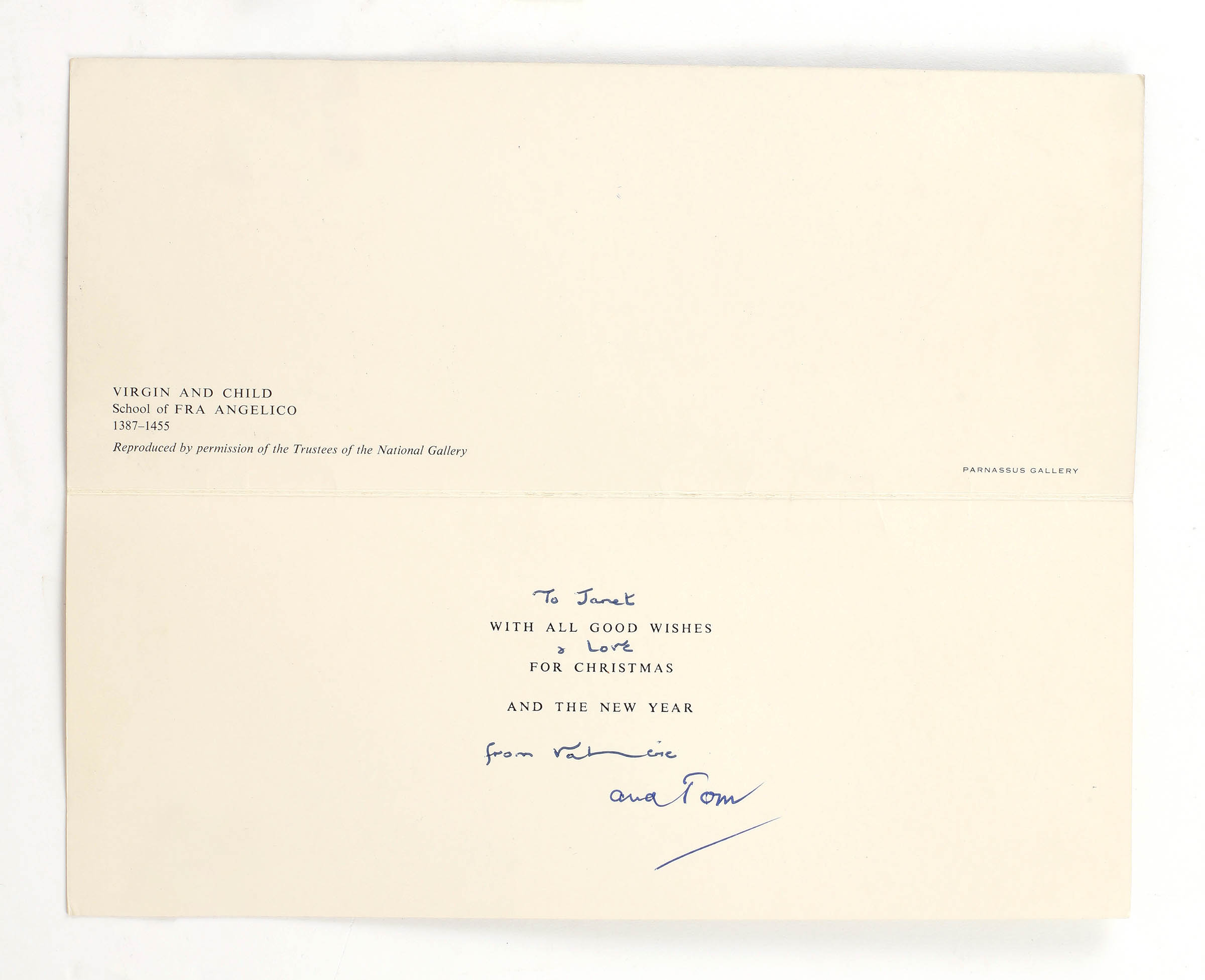 A single folded Christmas card, 97x247mm. "Virgin and Child" illustration to cover. Inscribed in ink by Valerie Eliot "To Janet & love from Valerie", and further inscribed "and Tom" by T.S. Eliot. Near fine condition, very minor creasing to fold.
