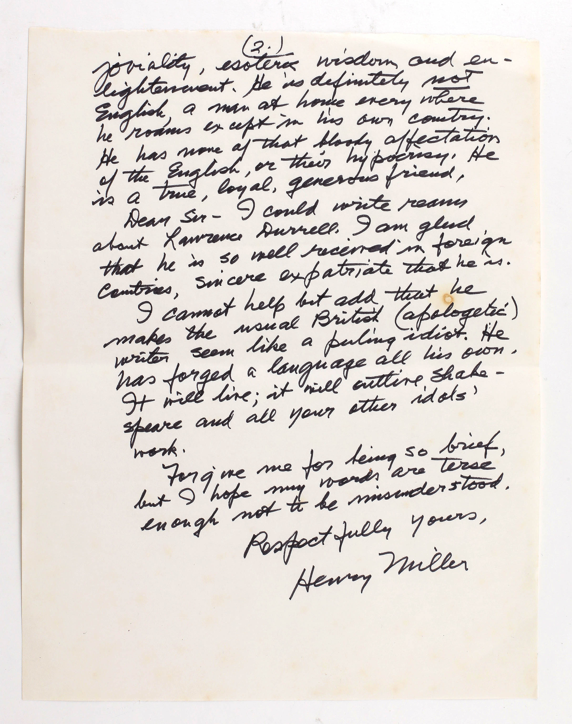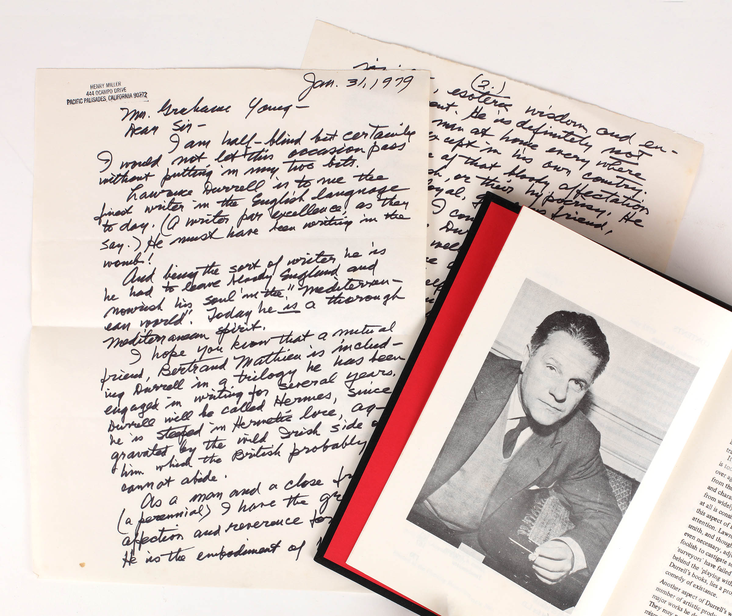 WTH HENRY MILLER MANUSCRIPT ON LAWRENCE DURRELL