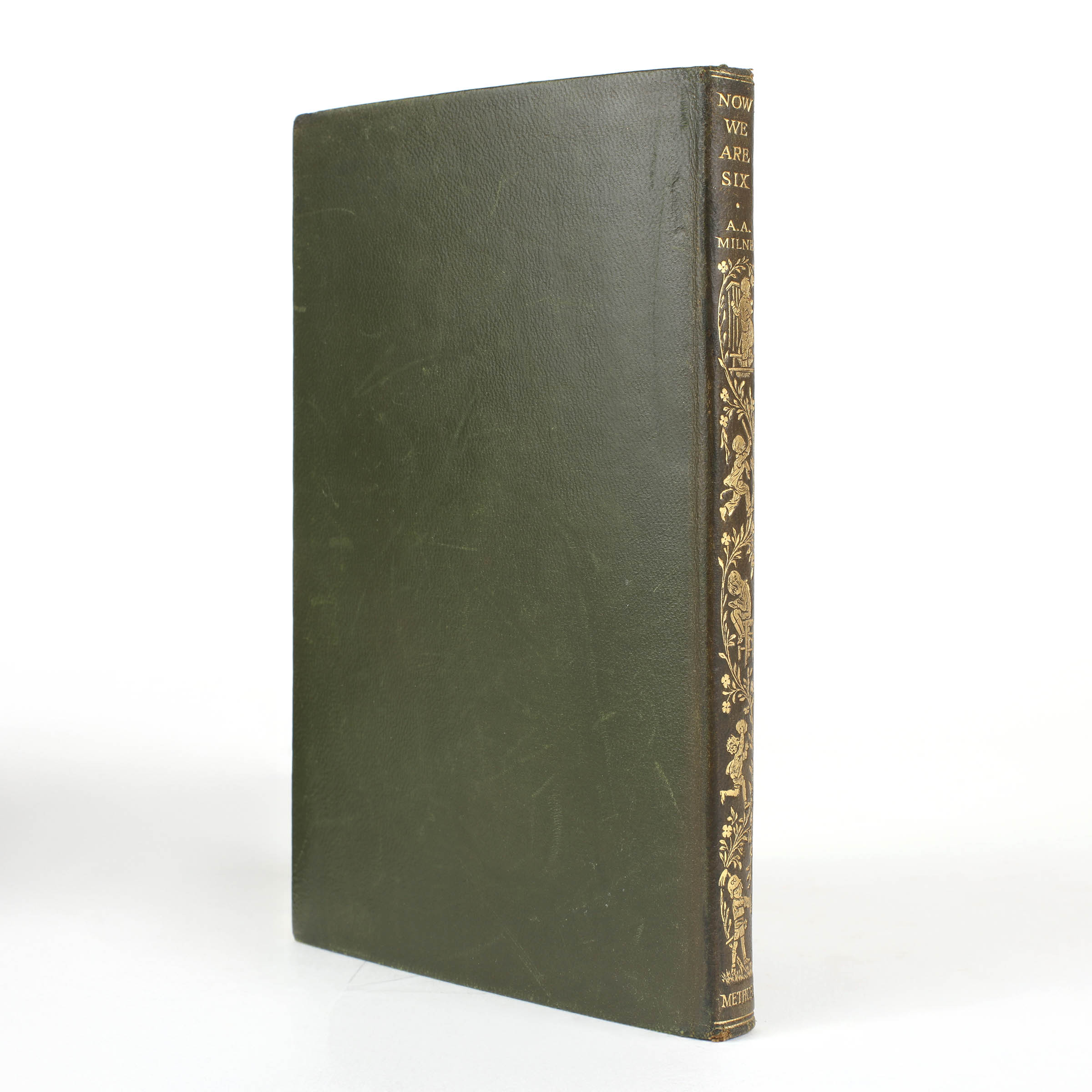 First edition, deluxe issue in publisher's full green soft leather with gilt vignette of Christopher Robin and his fishing rod on the upper cover and an elaborately decorated spine. All edges gilt and the silk page marker is present. The pictorial endpapers show characters from the verses and there are many line drawings throughout by E.H. Shepard. A near fine copy with a small rub to both the head and tail of the spine and a brief neat gift inscription on the half title page.