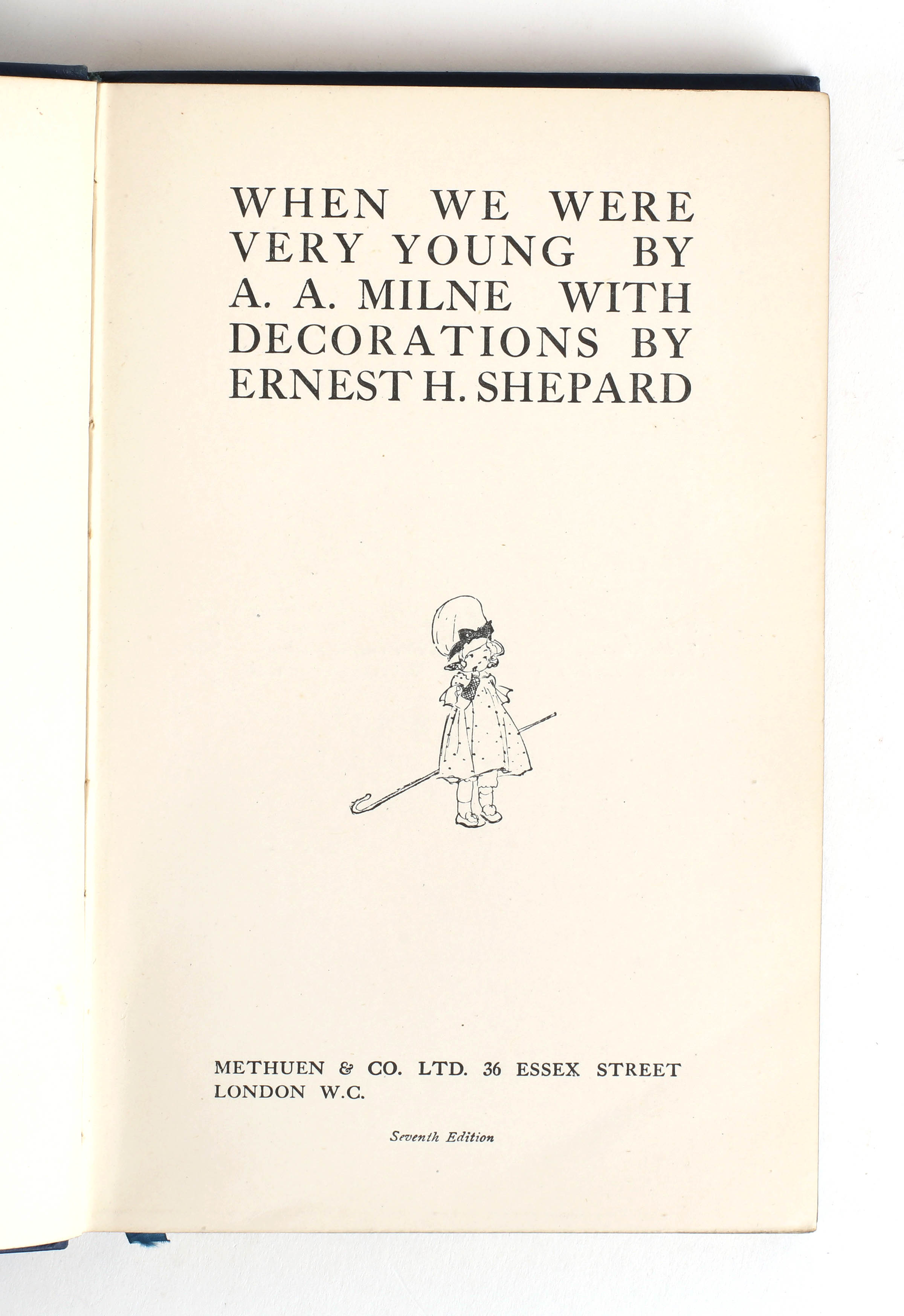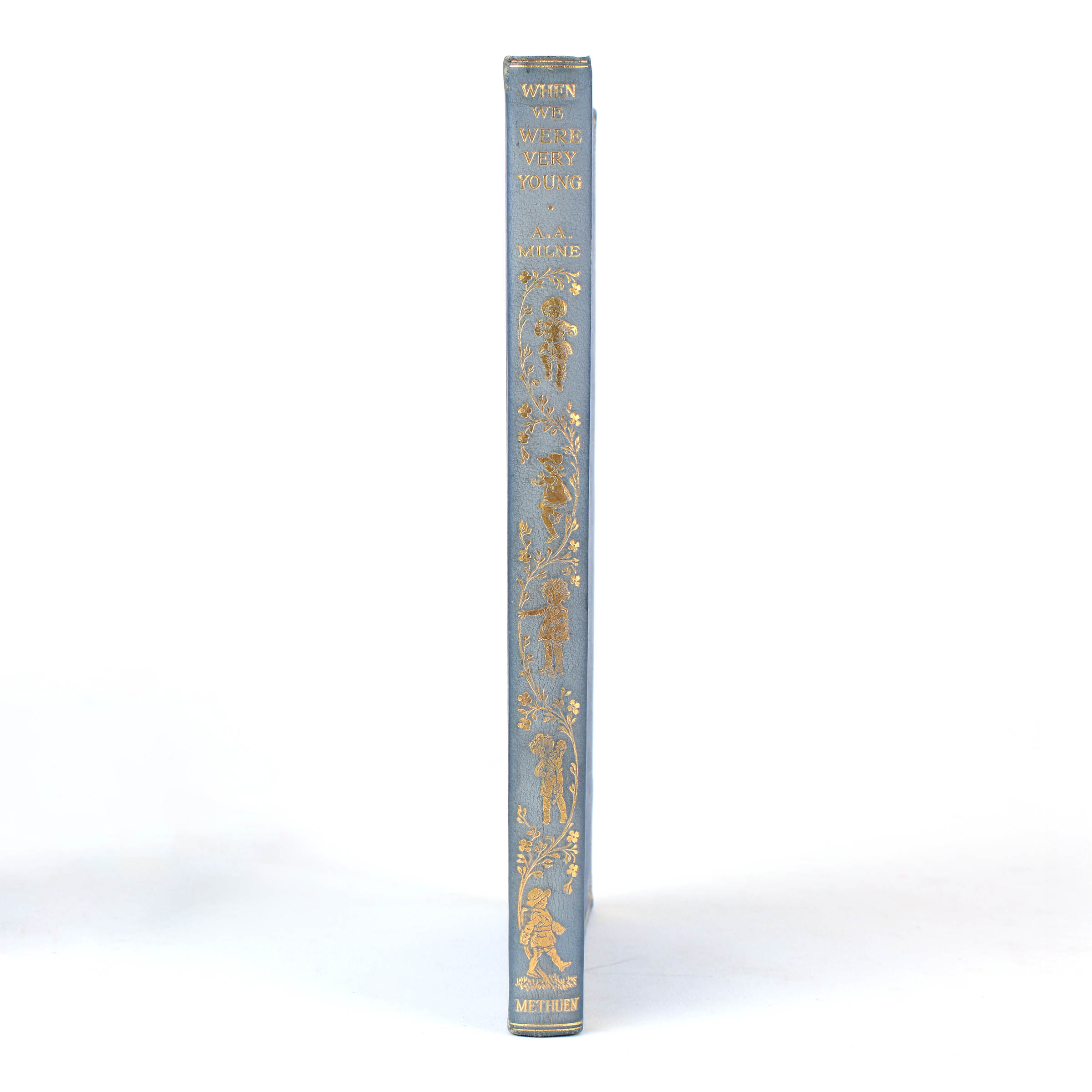 In 1925 Methuen decided to celebrate the success of Milne's first book of children's verses When We Were Very Young which was just going into its tenth edition. To do this they introduced these deluxe roan editions, in full leather with extra gilt.