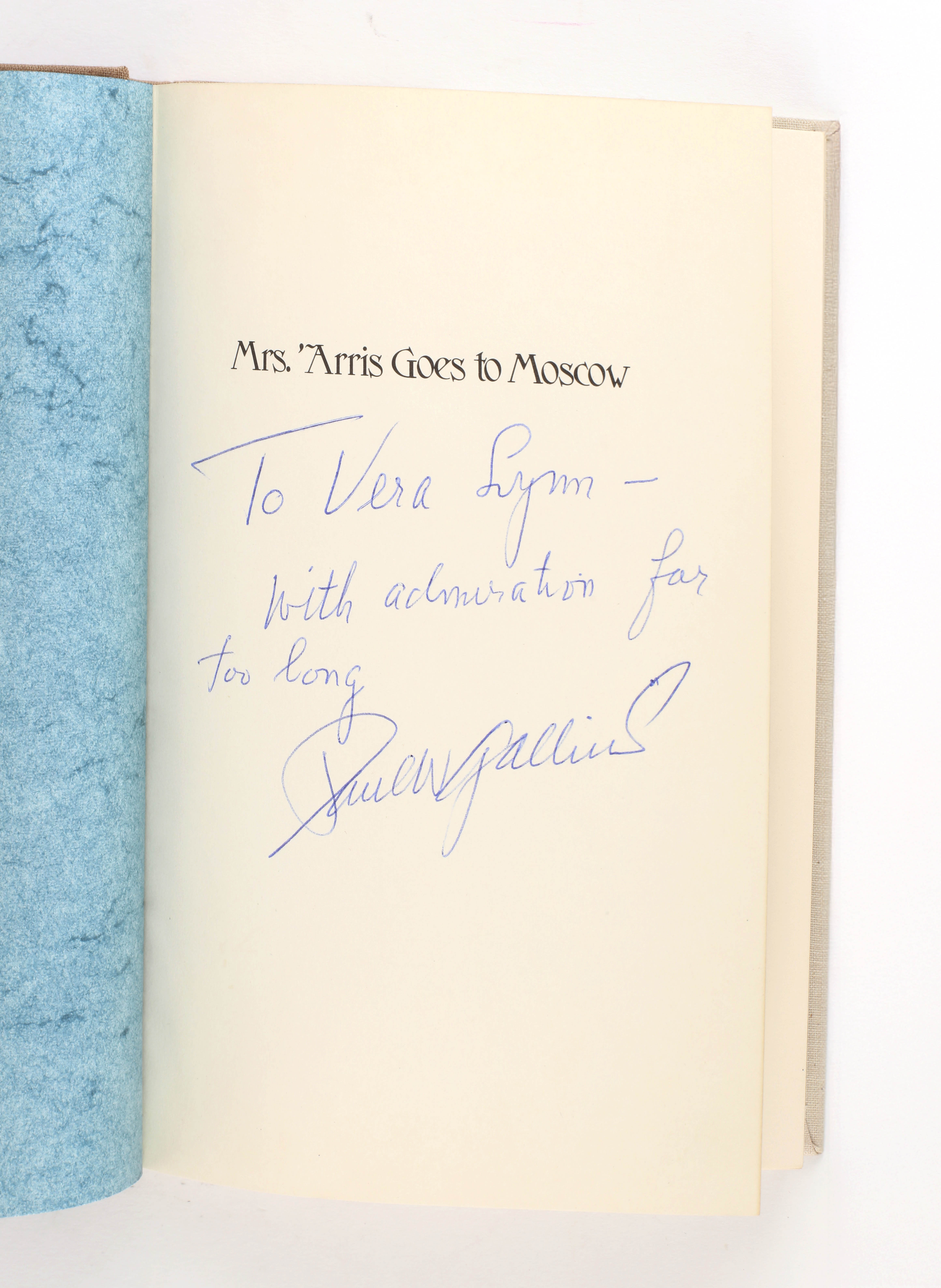This copy inscribed to Dame Vera Lynn, the English singer who during the Second World War became known as "The Forces' Sweetheart". Her popular songs include "We'll Meet Again" and "A Nightingale Sang in Berkeley Square".