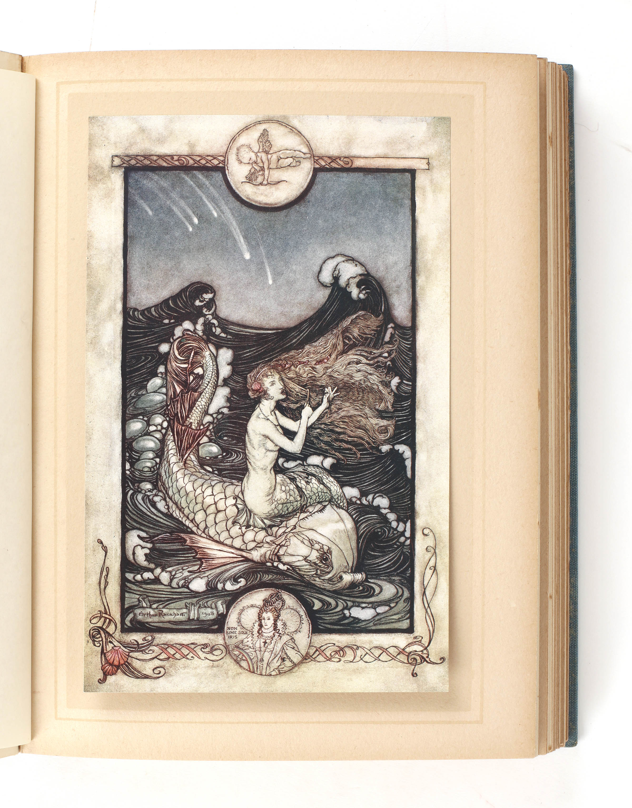 Tercentenary edition of Shakespeare's play, with Rackham illustrations. 4to. Blue cloth with gilt lettering and vignettes. Top edge blue. Forty colour plates mounted under tissue guards, plus black and white drawings. A fine copy with very slight fading to the spine.