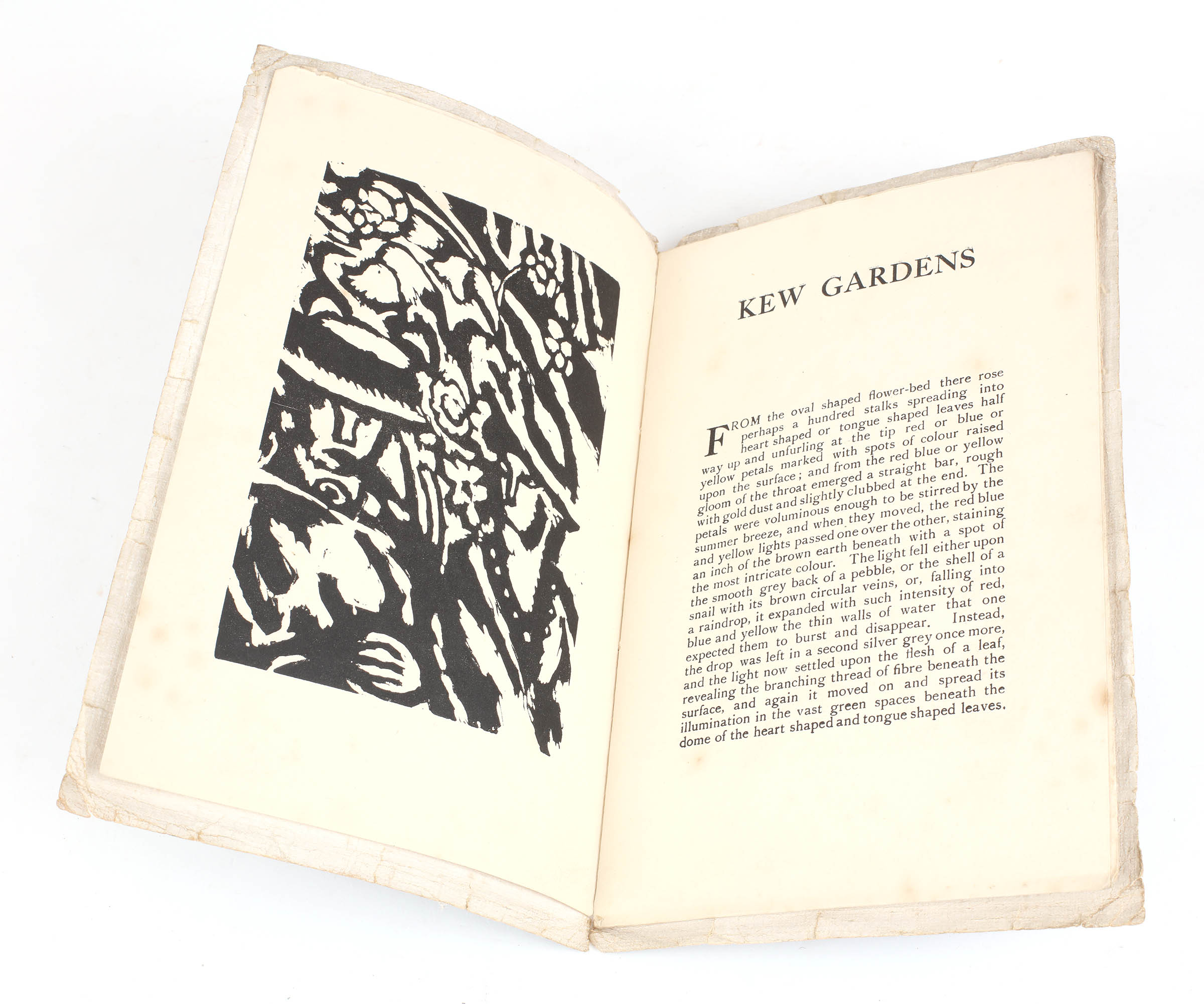 Second edition. Original 'wallpaper' wrappers, hand painted in blue, brown and orange to imitate those from Roger Fry's Omega Workshops,. Illustrated with two woodcuts by Vanessa Bell. Floral endpapers. A very good copy indeed, edges creased with small closed tears and a wear to the spine, but very little loss and entirely unrepaired.