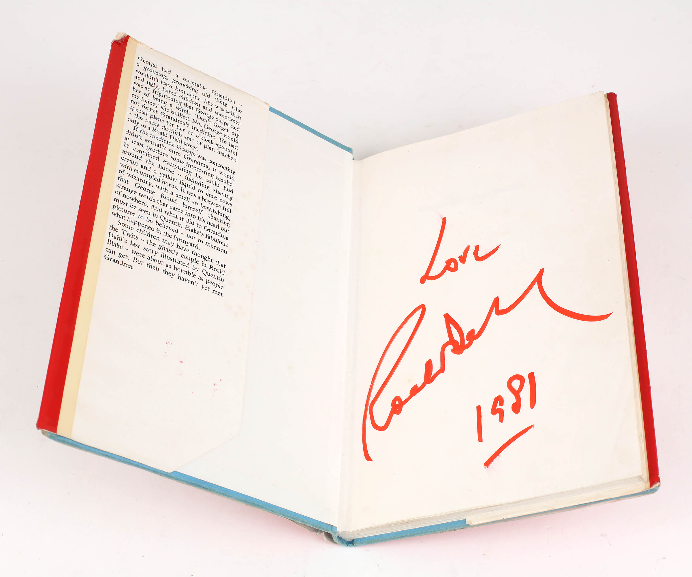 First edition. 8vo. Blue cloth with gilt lettering, in the original pictorial dustwrapper. Inscribed to the front free endpaper "Love Roald Dahl 1981". Illustrated in line by Quentin Blake. A fine copy, in a near fine dustwrapper.