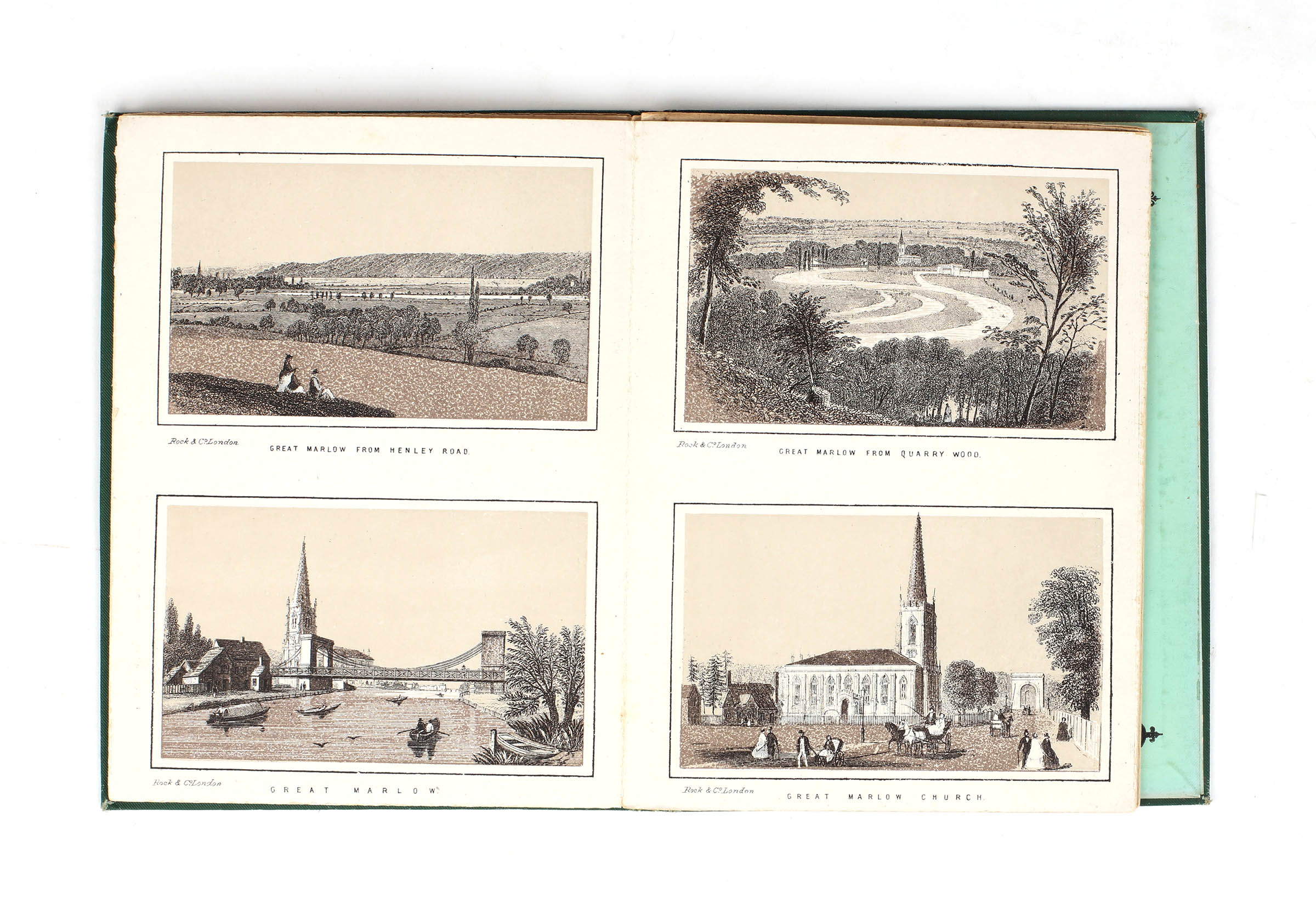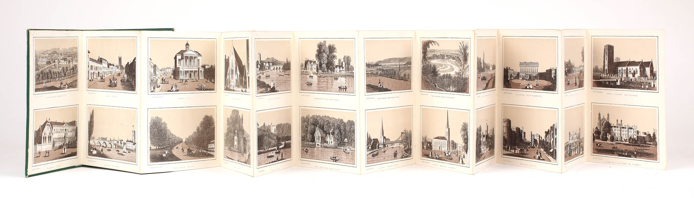 A charming album of views taken from photographs in and around Henley. The outer cover is green boards, embossed with gilt decoration and lettering. The contents consist of a folding concertina style panorama, with 24 views, two per page. A very good copy, a touch of mottling to the upper cover.