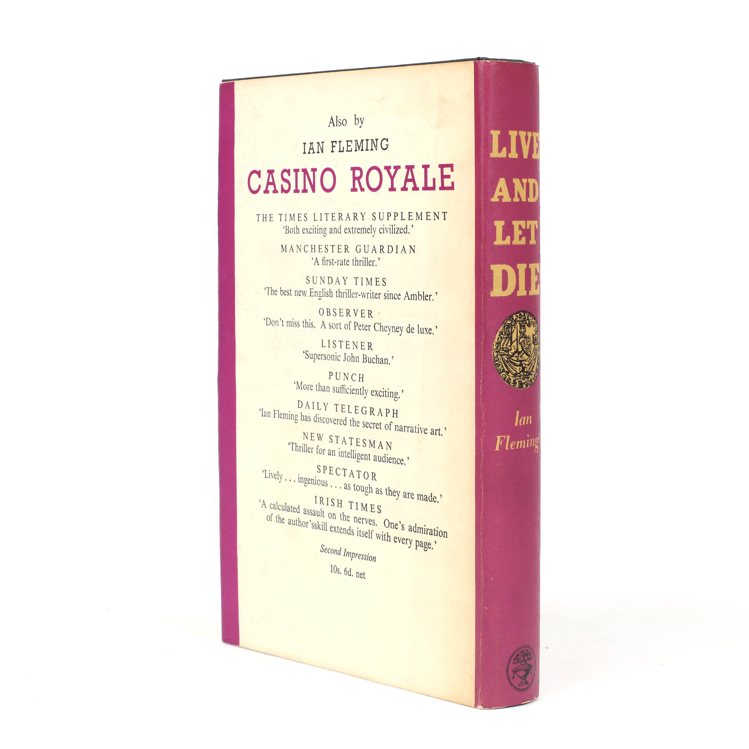 The second James Bond novel. The first state of the dustwrapper is identifiable by the lack of the two line credit on the front flap "Jacket devised by the author and executed by Kenneth Lewis". This was changed during the print run.