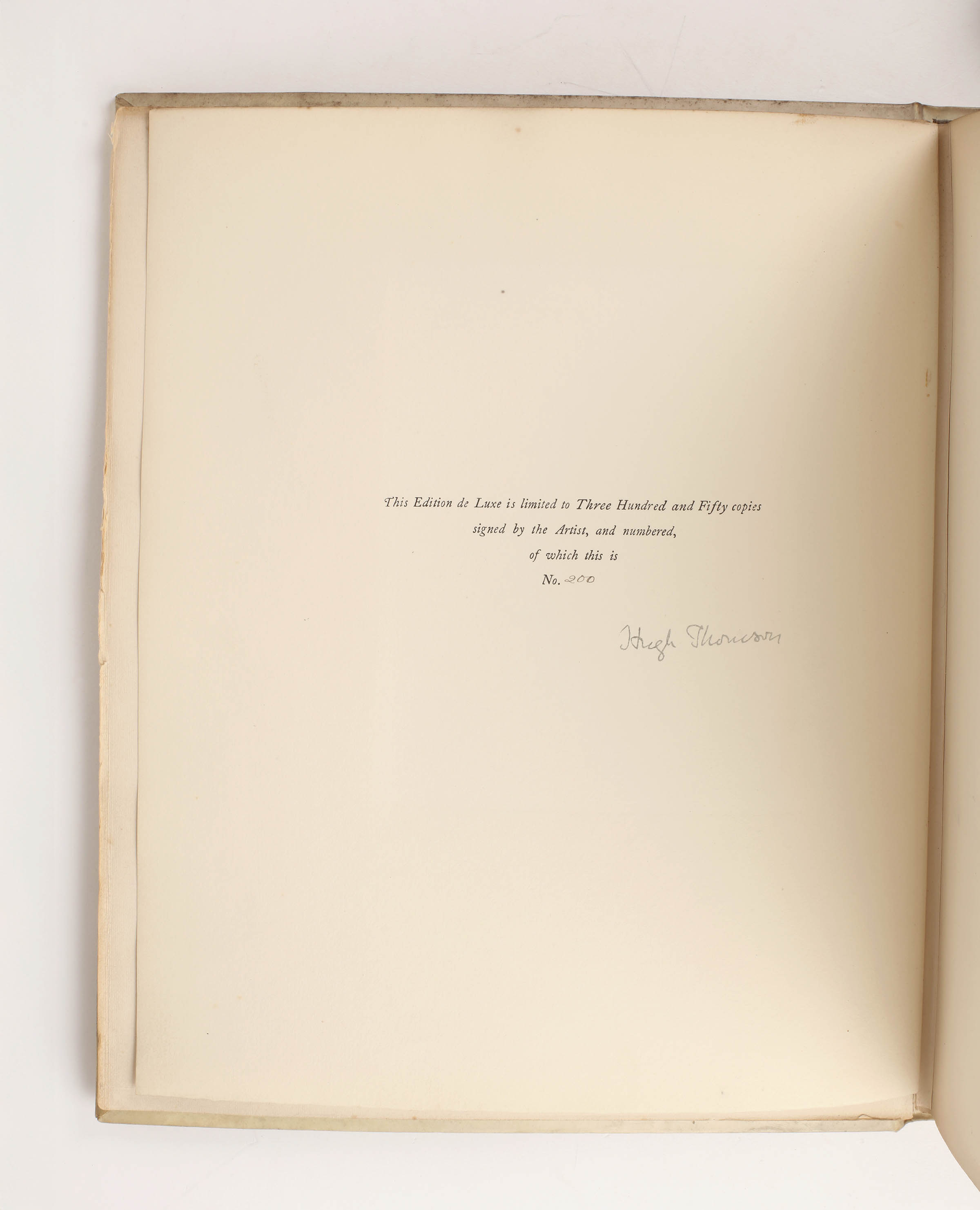 First Hugh Thomson edition, number 200 of 350 copies signed by the artist. Large 4to. Full white vellum elaborately decorated in gilt and red. Twenty four tipped in colour illustrations each protected by captioned tissue guards. A very good copy with some general dustiness to the vellum and slight splitting to the front hinge. Previous ownership inscription on the free front end paper.